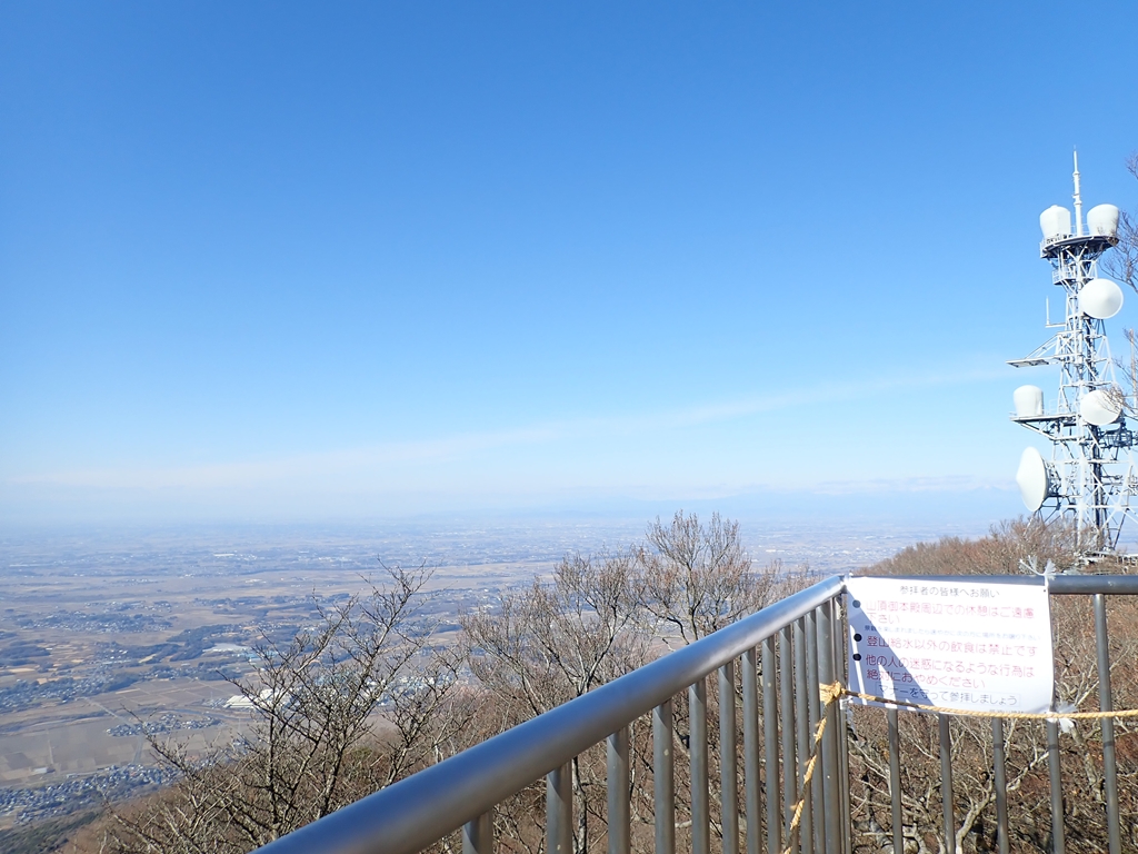 車1台をつくし湖駐車場にデポしてユースホステル跡へ向かう。そこにはもう建物はないが、15台程が駐車できるスペースがある。筑波山への最短ルートなので、大晦日から元旦は大いに賑わうらしい。工事用の車両が数台駐車していた。そこから御幸ヶ原へ登る道は御幸ヶ原の荷物・ゴミ運搬ルートになるらしく、小さなキャタピラー車が通るので広い作業道になっていた。登山道としては実につまらないルートである。30分程で御幸ヶ原に登りその先の横瀬夜雨歌碑の前で小休止した。女体山は正月の喧騒は終わり数人に会っただけの寂しい山頂だった。展望の良い岩への侵入を阻む柵が作られていた。快晴なのだが遠望はきかない。御幸ヶ原に戻って男体山に登る。こちらも遠望がきかないのは同じで、日光男体山は薄くみえたが白根山は見えなかった。女体山、男体山両方の神社に今年の無事と平安を祈願したので、今年は良い一年になるだろう。東屋に下ってまた小休止。