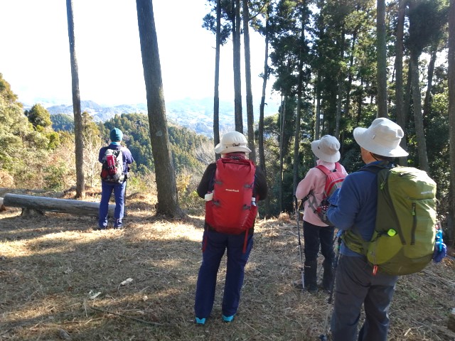 先ずは最初に人骨山(ヒトボネ)、車道を離れると道が不鮮明、テープが多く辿れば問題ないが、やぶが多く歩き辛い。このルートは歩く人が少ないのだろう。尾根に上がれば比較的歩きやすい、歩き始めから話が弾む、熊鈴要らずだ。分岐から少し急登になるが、間もなく山頂到着。腹を満たし、展望を楽しむ、海が見えるのは凄い、タンカーが可なり大きく確認された。腹を満たした後 津森山を目指す。小さな集落へ降り、cコースとの案内に従い登るが、こちら津森山の山頂までは意外に簡単に到着。少し離れた展望地まで足をのばすが、富士山はかろうじて見えるかな?という感じ。