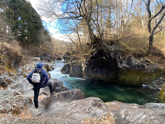 <詳細報告>小山を5時45分に出発し、憾満ヶ淵駐車場へ。車は一台も停まっていない。トイレは暖かい清潔なトイレが目の前にある。まずは外山を目指して車道歩き。朝早いので、外人が数人歩いているくらいで人気は少ない。外山の鳥居をくぐると、しばらく落ち葉の積もった道を九十九折りに進むと周りを手すりのようなもので補強された急登となる。しばらくゆくと開けた山頂へ。女峰山、男体山が雪を被って太陽を浴びて綺麗に光っていた。ここで写真を撮り、一度日光の街中を通り過ぎる。しばらく駅方向に歩いて右に入ったところが鳴虫山登山口で、ここから樹林の中をしばらく進むと右に木々の間から女峰山、男体山が見える尾根に出た。木の根の間を通りながら天王山、神ノ主山と通り過ぎ、鳴虫山到着。一人おじさんがいたが、静かな山頂であった。ここでランチタイムとなり、飲み干すシリーズの鶏とんという鶏白湯プラス味噌味のカップラーメンを食べた。まあまあ。ここから小ピークをいくつかすぎて最後急な下りとなる。下り切って左に曲がると憾満ヶ淵についた。お地蔵さんが赤い帽子と涎掛けをつけて並んでいた。苔むしておりかなり古いものだなあと見てみると1650年頃かと思われた。水量の多い淵を見て写真を撮り、そのまま駐車場へ。あっという間の山行だった。