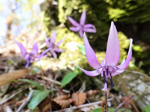 今シーズンは赤ヤシオを何度も観た。今回は時期的に適期と考え大間々周辺を訪れてみた。天気予報が変わり1日前進(急用で1名欠席)夜半までの大雨も上がり霧の4号線をはしる、急遽のことで行動食を準備してなく、ナビの案内に従い始めての道路を行くが、コンビニを捜すのに行ったり来たり一苦労。ようやく大間々へ到着。あたりは樹々の芽吹きにはまだ早く、レンゲツツジなどマダマダの状況です。剣ヶ峰ピストンは諦め、ミツモチを目指しヤシオコースを辿る、周辺は雑草も未だ生えず雑木の芽吹きには未だ早い。かろうじてカタクリが散見される状況だ。半分ほど歩くと、対岸の斜面がヤシオで赤く染まるのが見え始めてきた、期待通りだ。1263Mピーク周辺が見事に咲きシャッターを頻繁に切る、時期的に適期だ。ミツモチを目指す、昨夜の大雨で随所に水が溜まっていた。