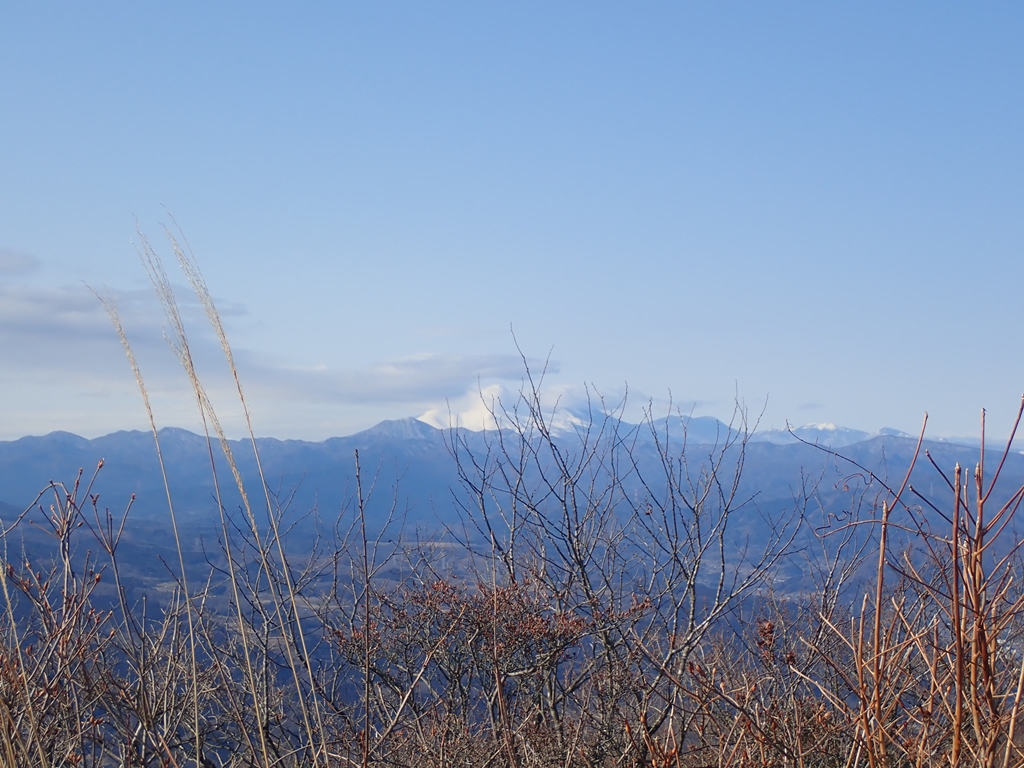 山頂ではほぼ360度の眺望を楽しめた。南に榛名、そこから浅間山、四阿山、草津白根、白砂山。谷川岳は荒船山のような形の雲に包まれていた。上州武尊はどっしりとした山塊を見せていた。その右に日光連山の白根山、男体山、皇海山。そして赤城。ゆっくりと眺望を楽しんだ。晴れて来たのも幸いだった。