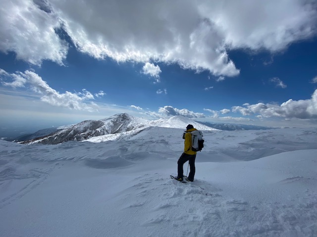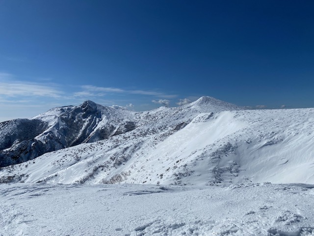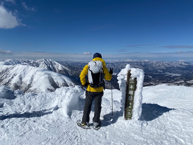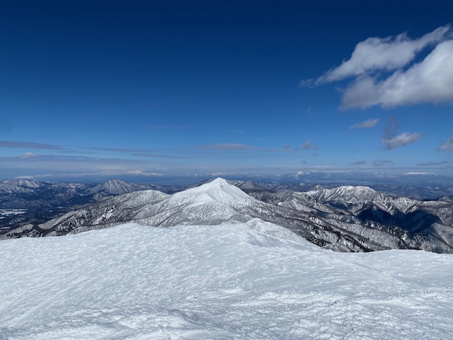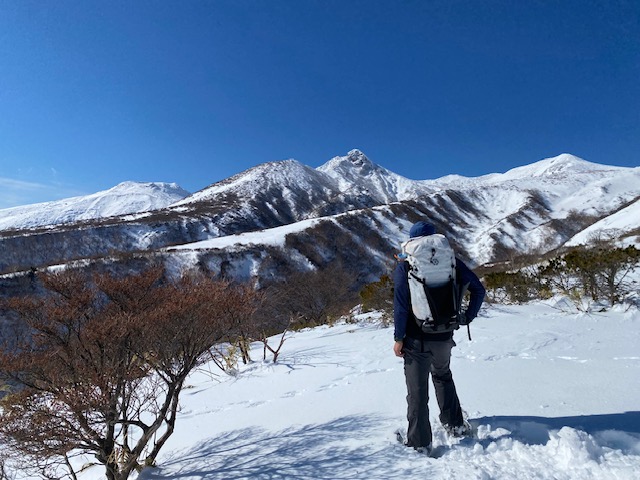 <詳細報告>那須の旅館を9時00分に出発し、9時30分にマウントジーンズスキー場に到着。天気のより3連休初日だけあって、駐車場はたくさんのお客さん。スキー場までの道もスキー場の駐車場も全く雪がないというとんでもない雪の少なさだった。エスカレーターに乗って受付に行くとリフト券を買うための行列あり、そこに連れに並んでもらって、インフォメーションに登山計画書を提出した。東急グループのスキー場はここらへんがとてもしっかりしており、下山報告も忘れずきてくださいと言われるし、ゴンドラ券のみ買うと、「計画書は提出しましたね」と念を押されたという。前日連れも含めてストックを安達太良に忘れてきてしまい、私の普通の登山用ストックしかなかったので、レンラルショップに行ったところ、長蛇の列で、時間を考えたら無理と判断し、一本ずつストックを持ってゴンドラに乗り込んだ。山頂駅には丁度10時に到着して、スノーシューを履いて三本槍岳方面に登り始めた。リフト降り場があるところまではピステンが入っており、圧雪されて歩きやすい。そこからしばらくはほぼ斜度のない樹林帯を進んでゆく。中の大倉尾根に入りやや急登になってきたところで数匹の犬をリードをつけていない状態で登山道に放置したハイカーがいて、りく のように吠えないでおとなしい犬ならまだしも、ギャンギャン吠えており、連れがたまらず「リードをつけてもらえますか」と声をかけると「すみません」と2匹におそらくリードをつけようとしていた。しかしギャンギャン犬はもう一人の女性の犬らしく、こちらは全く泣いていても気にしていないというか、人類皆犬好きだから何をしても許される的発想なのか、笑ってみていた。圧雪したところに大きな犬のフンが転がっていたので、これらのうちのどれかの犬の仕業と強く思われた。急登を登り切り、赤面山分岐をこえて1800メーターを超えてくると一気に視界が開ける。茶臼岳、朝日岳、三本槍岳、真っ白で素晴らしい光景だ。ここから90度角度を変えて三本槍岳方面に向かってゆくと多くのハイカーが登っていた。山頂に着くと多くのハイカーが食事をしており、中年男性4人組に「大事な写真なのでお願いします」と言われて山名板と共に写真を撮った。何に使うのかわからないが、プレッシャーかけんなよと思った。山頂からは飯豊連峰、尾瀬の山、日光白根山も見えて、昨日のぼった安達太良山、吾妻連峰も全て見えて圧巻だった。風がほとんどなく、青空で極めて条件の良い登山日和だった。ここから引き返し赤面山を目指したが、赤面山分岐からは、山スキーならトラバースできるだろうが、スノーシューでは危険な上、雪崩も懸念されたので、諦めて、そのまま下山を進めた。平になったあたりでランチタイムとした。今回も鶏とんという味噌パイタン味のラーメンで美味い。風もなくポカポカ陽気だった。ゴンドラ乗り場にはドッグランがあり、朝らにキッズのそり遊びの場所もあり、子供達と犬で賑わっていた。スキーヤーで賑わっていたが、今シーズンで廃業になるマウントジーンズ、ゴンドラを使っての登山はできなくなるので、ギリギリくることができてラッキーであった。スノーシューの使い方もかなり慣れることができたと思う。