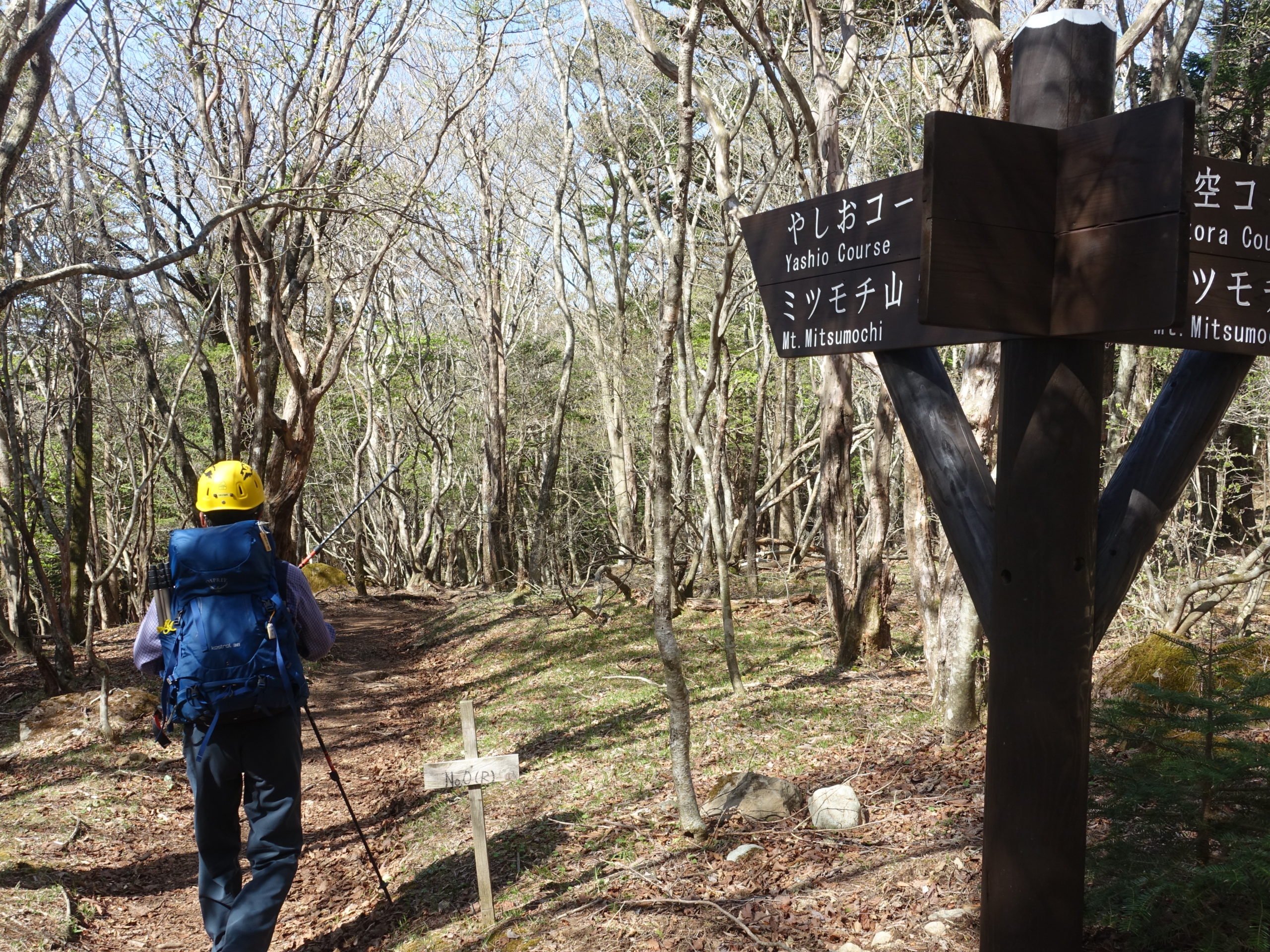 関心することは、行きも帰りも人口林が無く、自然の中の樹林帯であることは素晴らしいことでした。あと気になったことは、一帯の笹が殆ど枯れているということ、それと水が特別少ないということです。ヤシオコースは何度も沢を越えていきますが、チヨロチョロ流れていたのは1カ所のみ、あとは涸れていました。コースの後半、左側の斜面に赤ヤシオが咲いていれば遠くからもハッキリ認識できますが、残念な事に1w~10日遅い感じ、かなり散っていました、それと今年の花付きは少し少ない感じでした。ミツバもそれほど目立つ存在ではなく、山ツツジはつぼみでこれからです。