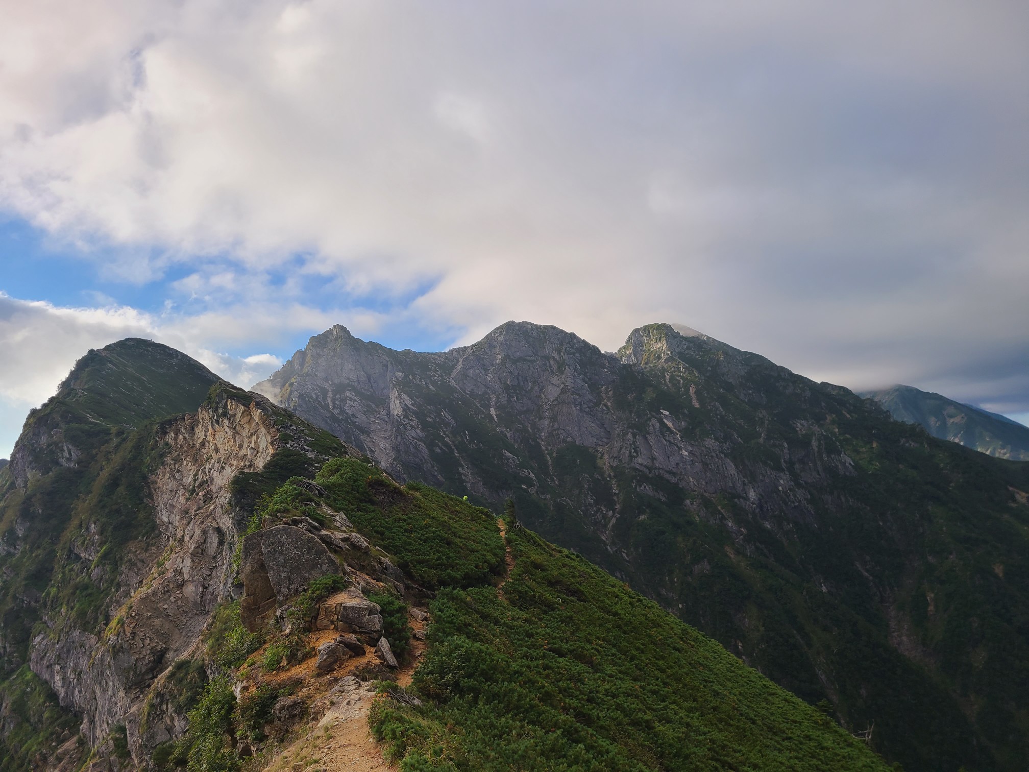 <行程>6:00大池山荘ー7:35小蓮華岳ー9:10白馬岳ー11:10杓子岳ー12:25白馬槍ヶ岳ー13:40天狗山荘