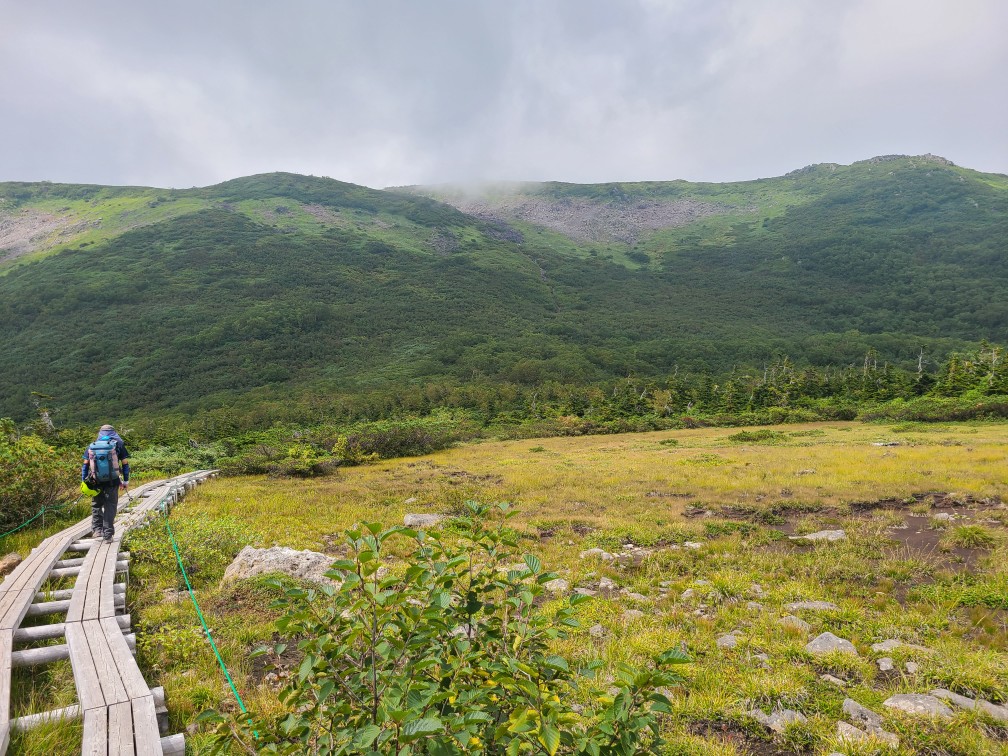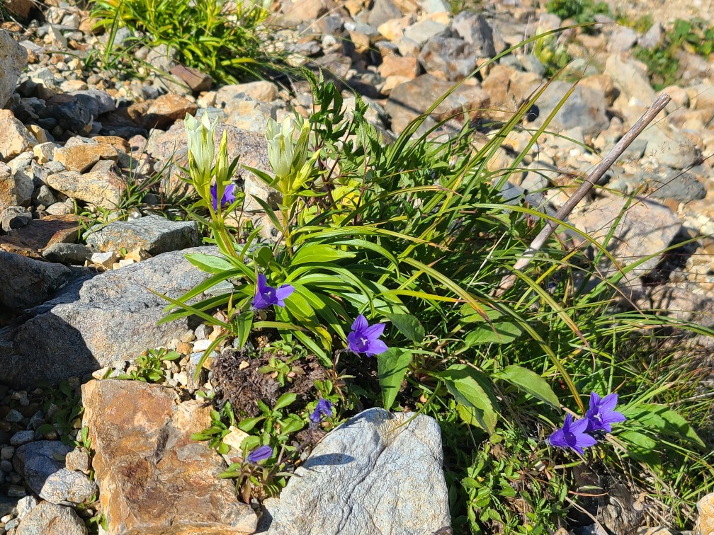 タクシーを8時半に予約したので5時前に家を出ました。八方第3無料駐車場に8時過ぎに着き支度をしたところにタクシーが来て栂池ロープウエー駅に向かいました。平日で時間も遅いのでガラガラです。ゴンドラロープウエーを乗り継いで栂池自然園ビジターセンターに着き登山届を提出して出発しました。ここは以前下山で歩いたコース。雷雨の中歩いたので記憶も薄く岩ゴロゴロの道でもっと狭かったような気がしましたが意外と開放的な道で登りと下りでは感じ方が違うのかなといろいろ思いながら、リンドウの花やたくさんの実をつけたナナカマドがあり秋の気配を感じながら登りました。白馬乗鞍に着くとガスに覆われてしまい。遠くの景色は見られませんでした。お昼過ぎに小屋に着き、ゆっくり過ごしました。夕飯はカレーライスでおかわり自由でした。蚕部屋の2階の4畳を2人で使えて気を遣わずにすみました。