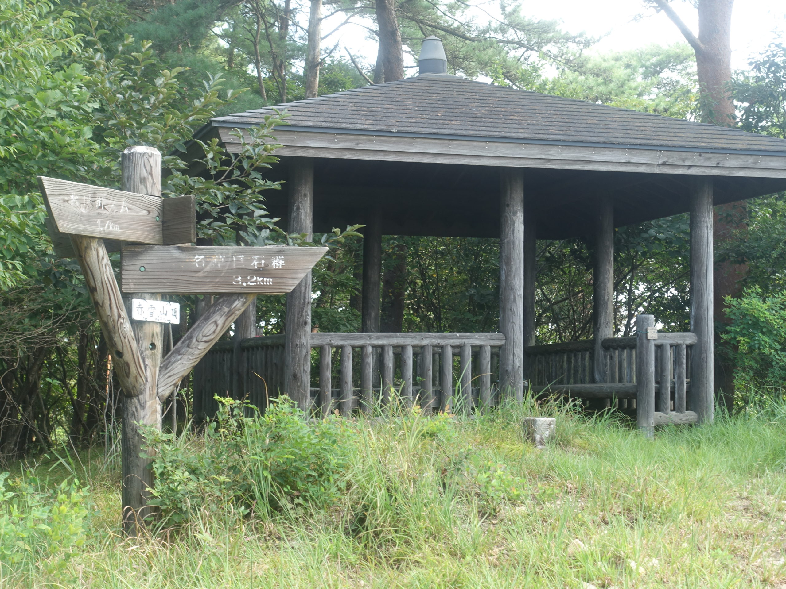 前回は名草巨石群からの観光がてらの長いコースでしたが、今回は松田川ダムからの最短ルートです。尾根ルートの取りつきだけは20mほど草ボウボウだが、過ぎると整備された道となり、植林の中ジグをきっての登りとなります。ほぼ急登が続き鳥の声を聞きながら頑張れば、東屋のある山頂です。今日も誰とも逢いません。腹ごしらえのあと下山です。