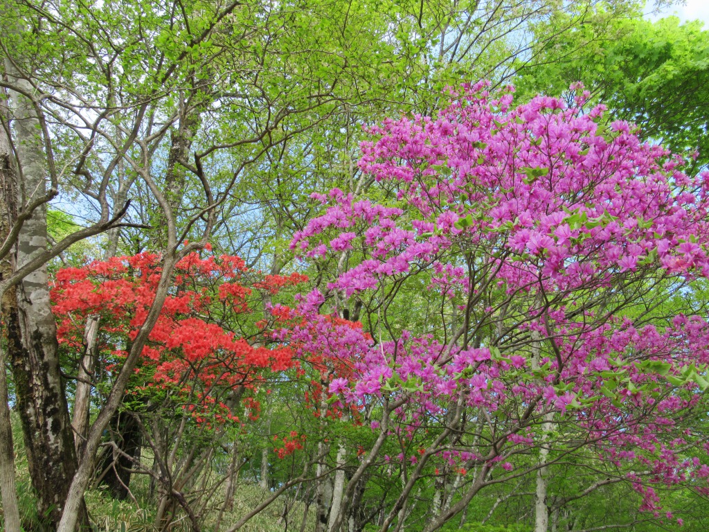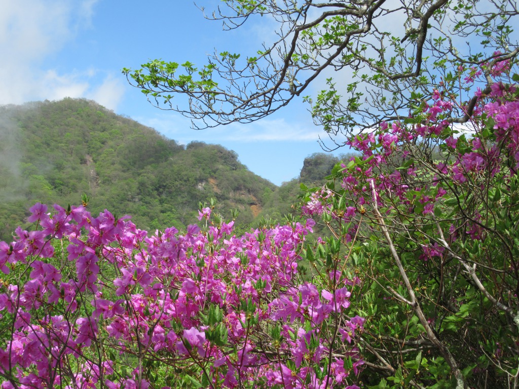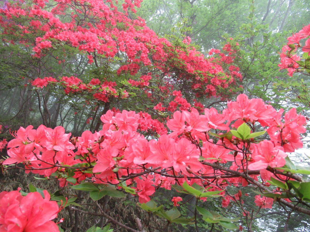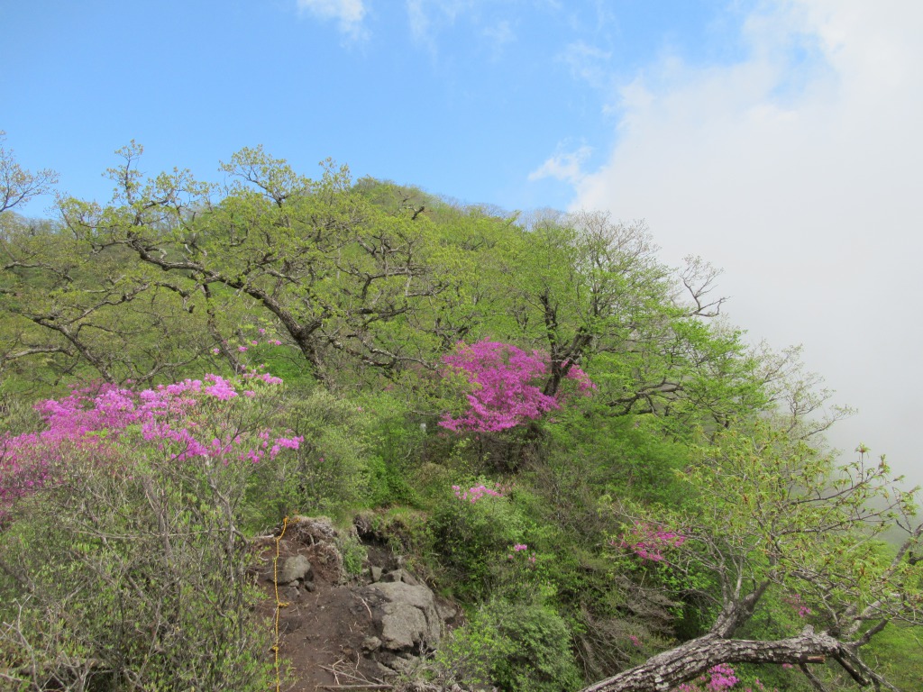 始めたヤマツツジが見え、高度を上げるに従い見頃の花が一杯になって来て、さらに登ると