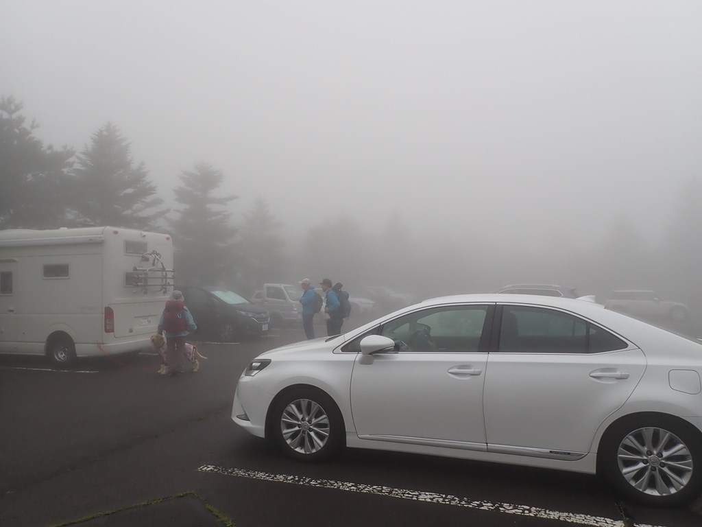 山行は2年ぶりという「すぎと」さんが参加。「きたはら」さんは現地集合で、強風の吹く登山者用駐車場で仮眠をとった。