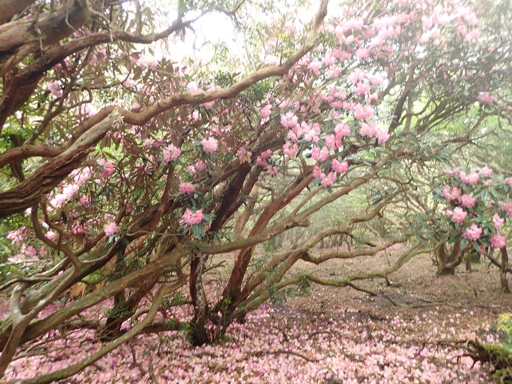 天城山はアマギシャクナゲで有名なのだが、登山道の周辺では株数がずいぶん少ないように感じた。おまけに昨日の強風でその多くが落花していた。しかし、天城ツツジ(ミツバツツジの仲間)は見頃の木が多く残っていたのが救いだった。