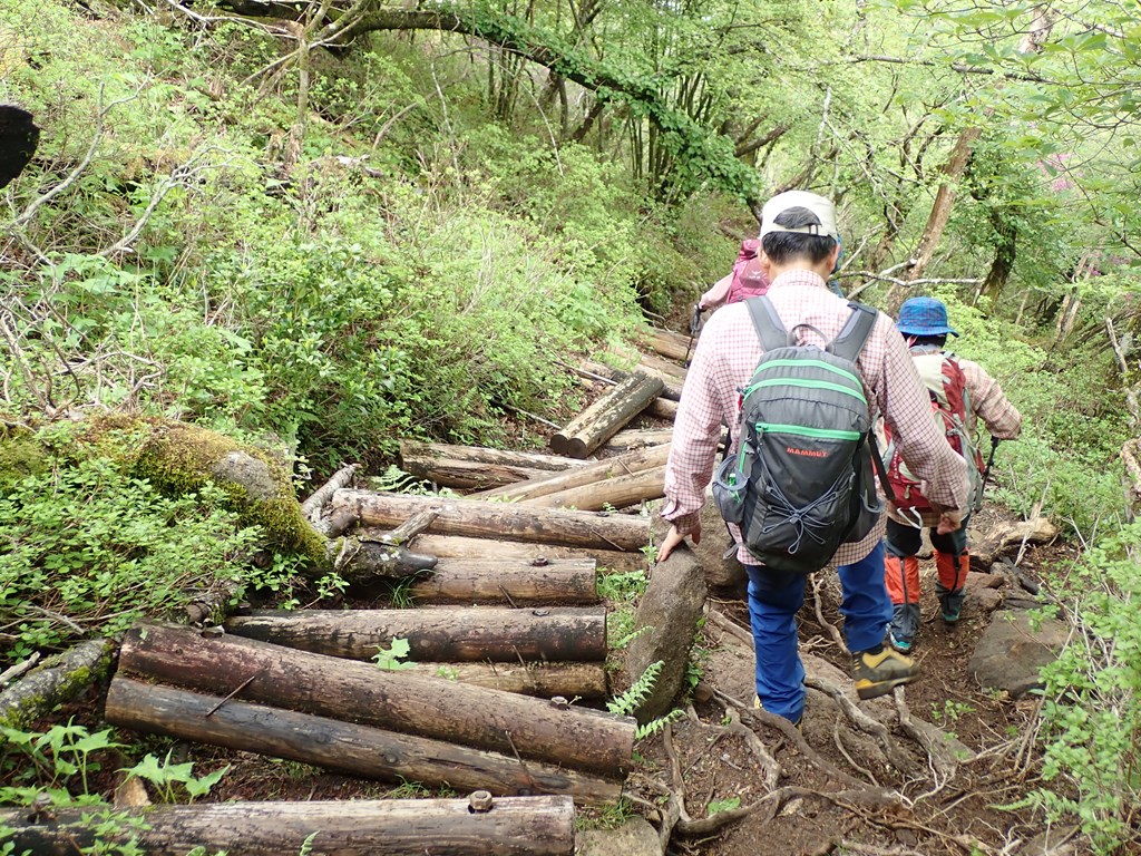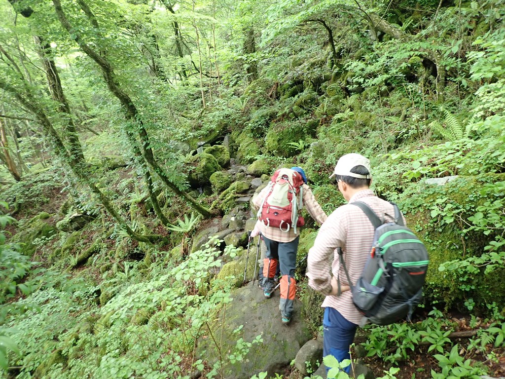 周回の後半は荒れた登山道や、急斜面のトラバース道が多く、日陰の苔むした岩場もあり、大いに神経を使った。登山者が多いので整備された遊歩道を予測していたが、野趣豊かな登山道と云えそうだ。
