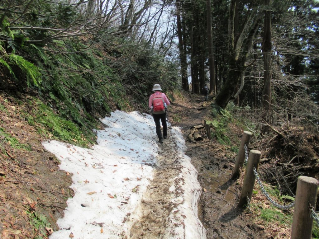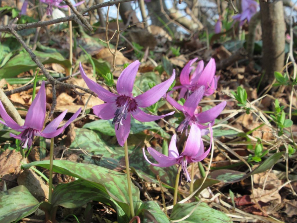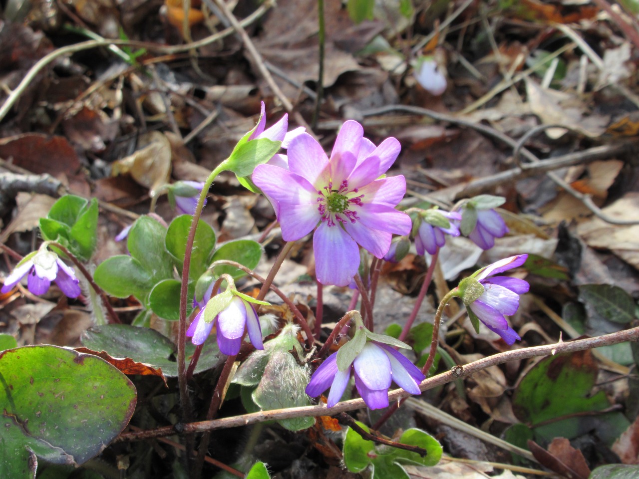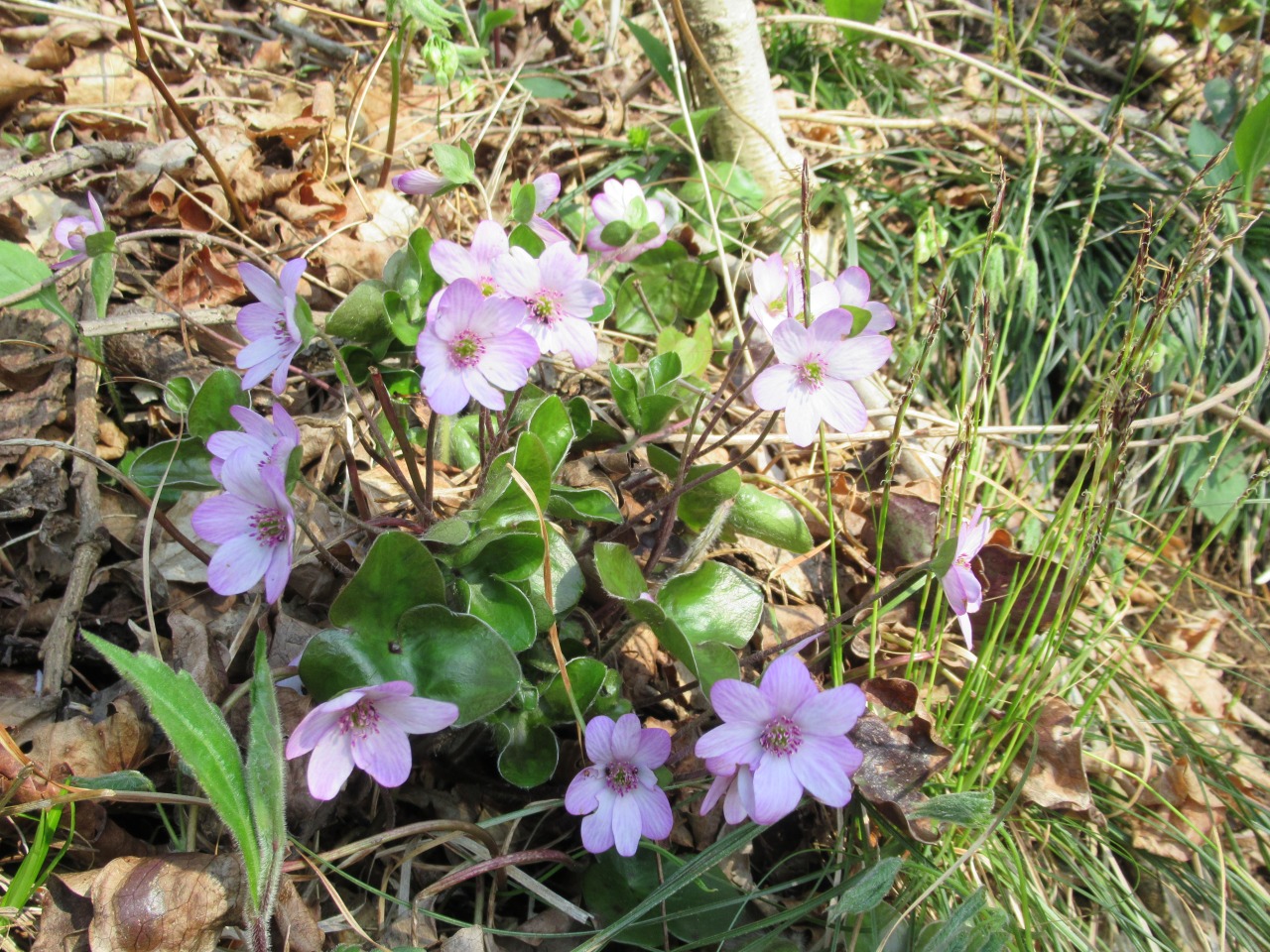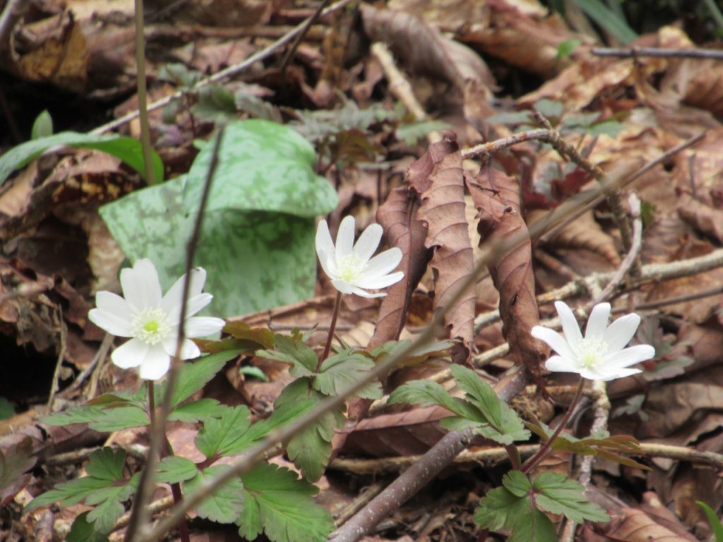 雨上がりの桜尾根登山道はぬかるんで田んぼの様ですが、雪割草は終盤を迎えているものの、色とりどりの花が咲いており、まだまだ楽しめます。少し登り急坂になると一面カタクリが咲き乱れており、最盛期、白いカタクリも見つけラッキーです。ショウジョウバカマ、トキワイカリソウ、ナガハシスミレなどの花々も見られ春爛漫といったところでしょうか?