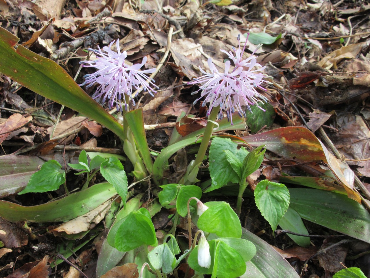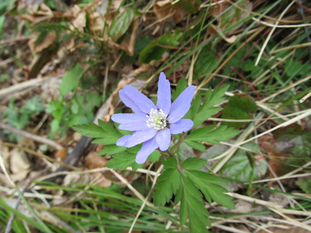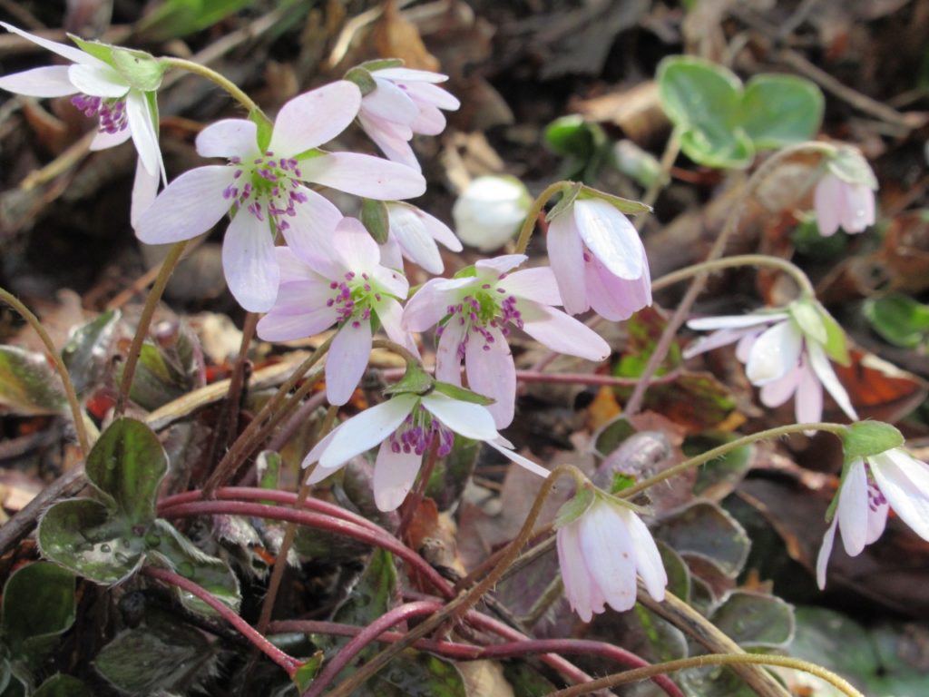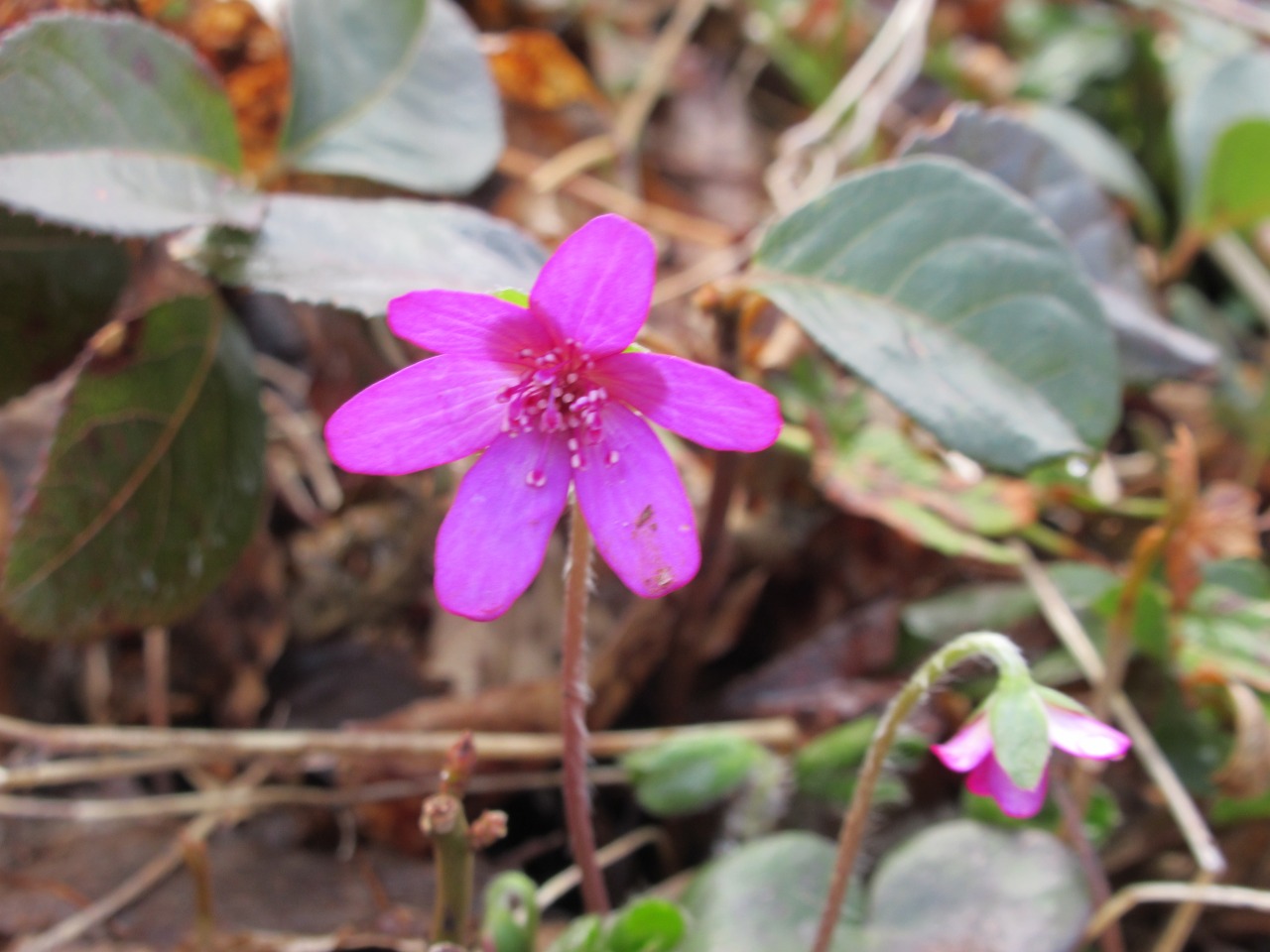 雨上がりの桜尾根登山道はぬかるんで田んぼの様ですが、雪割草は終盤を迎えているものの、色とりどりの花が咲いており、まだまだ楽しめます。少し登り急坂になると一面カタクリが咲き乱れており、最盛期、白いカタクリも見つけラッキーです。ショウジョウバカマ、トキワイカリソウ、ナガハシスミレなどの花々も見られ春爛漫といったところでしょうか?