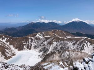 <詳細報告>天気の良い時を見計らって毎年この時期に登っている日光白根山に行きました。昨年、登った時は、雪も少なく、踏み抜きに気をつけて登った記憶がありましたが、今年は、雪が多いという事前情報をもっていたのでどんなものかと思っていました。確かに、雪が多く、しかも雪は圧雪で滑りやすい状況でしたが、連休中の天気が良い日だったので大勢の人が登っていました。登り始めの林の中は、ほぼ無風で暑く感じる、長袖のシャツ一枚で調度良い。森林限界を超えて稜線を登り始めると途端に風の冷たさを感じるが山頂をみると雲一つない青空で気分がいい。山頂手前でおにぎりを食べ、山頂に向かう。山頂には、数名の先客がいたが思ったより少ないと感じた。山頂でこれからこれから息子の応援のため叫びますという人がいた。陸上で頑張っている息子へのエールらしい。下山途中、奥さんがすれ違った人から叫ぶ声が聞こえましたがあれは、なんですかと聞かれていた。下山中、森林に入ってすぐに足を滑らせて転倒。傾斜が急でなかったので大したことはなかったが、トレッキングポールをだして慎重にくだることにした。日光白根山は、何度登ったかわからないくらいだが、毎回違い景色を見せてくれて飽きることがない。次回は、雪がなくなった頃、花の咲く時期に行ってみたい。
