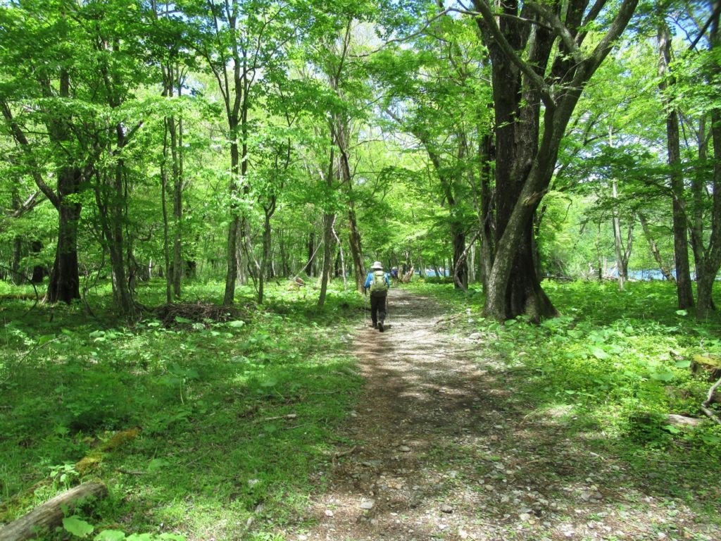 時間も早いので熊窪から千手ケ浜に足を延ばします。人混みを予想していましたが、閑散としておりクリンソウ、サクラソウなどを見ながら散策し大休止、この頃には空も晴れ、湖畔からは高山、男体山が良く見えました。休憩後、熊窪に戻り、赤岩経由で湖畔を歩き駐車場に戻りました。予想していたより天気は良く、シロヤシオなどの花々も楽しめました。