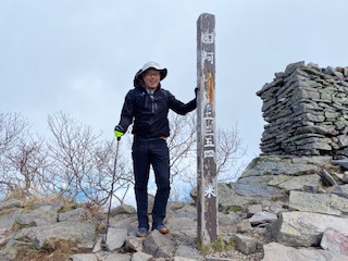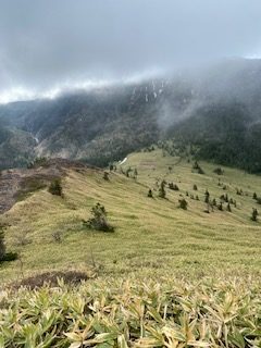 <詳細報告>5月23日4時00分小山出発。菅平牧場の駐車場は第2駐車場であった。根子岳登山口から開始したが、多くの人は四阿山を先に目指すのか、根子岳方面は登山者が少なかった。初めは晴れて気持ちが良い牧場歩きであった。その後も歩きやすい登山道を登ってゆくと、やや急登になり、頂上が見えてくる頃にはガスが出て景色が見えなくなってしまった。残念。山頂には根子岳の標識はなく、祠と縄が巻かれた石があるのみであった。2人の登山者がバーナーで何か作って食べていた。見通しが良くないので、四阿山に向かってゆくと、気持ちの良い低い笹の稜線歩きとなった。すこしずつ晴れ間も見えてきた。残雪が一部あるものの、危険箇所はなく、踏み抜きもなかった。四阿山山頂には10人程度の登山者がいて、この時には周囲が360度見渡せるようになった。ここで少しおにぎりを食べて、下山開始。晴れて気持ちの良い登山道であった。所々名前の知らない花があったが、すくなかった。ほどなく牧場に戻った。ソフトクリームを食べつつ車に戻った。貴重な晴れの気持ち良い山行であった。