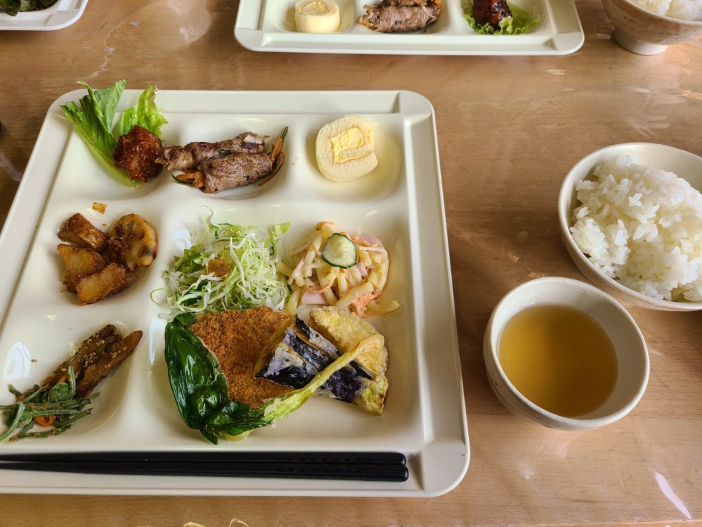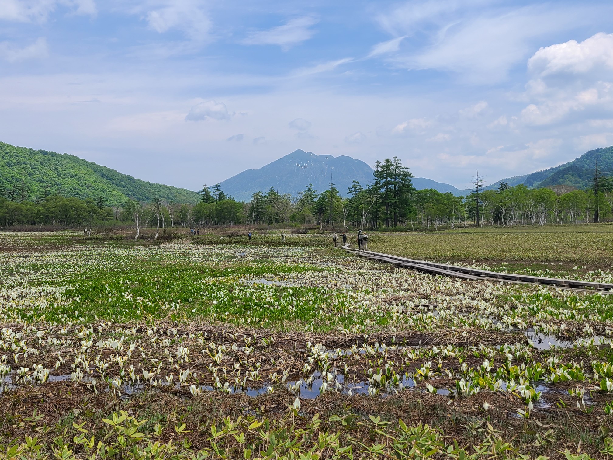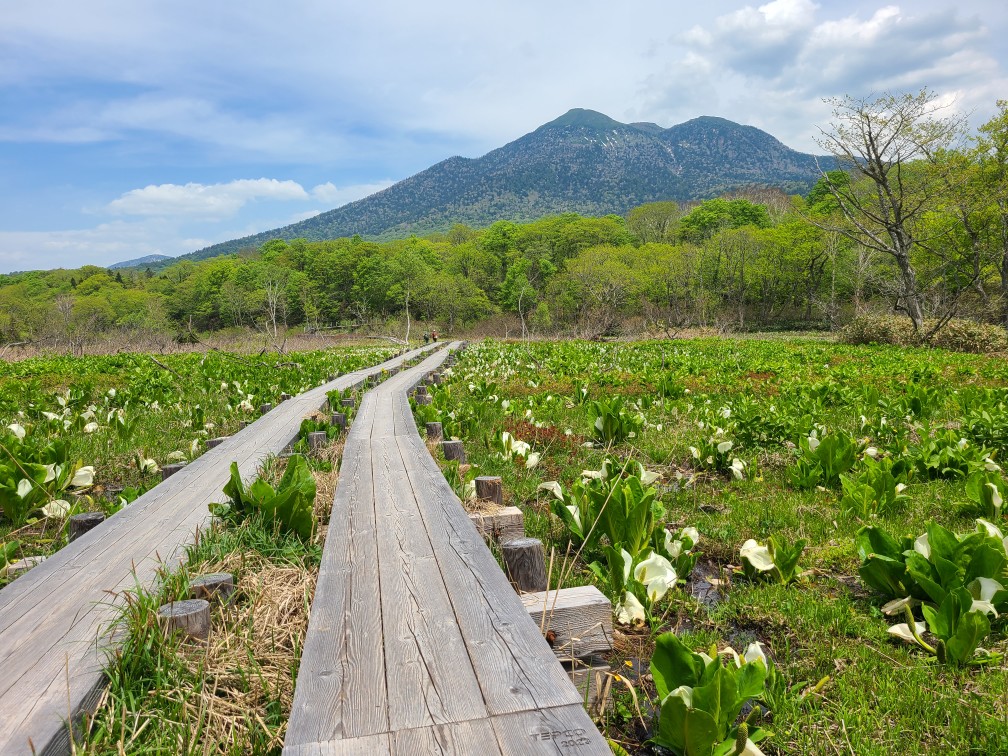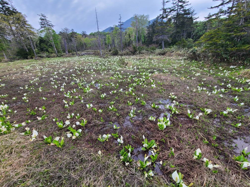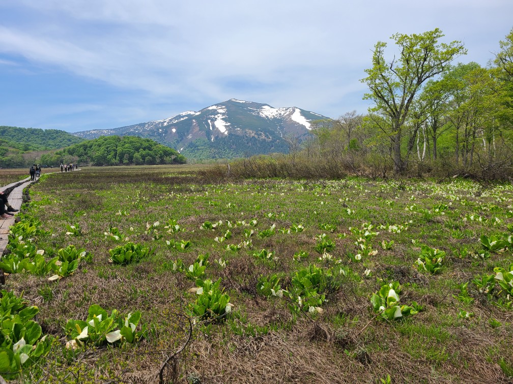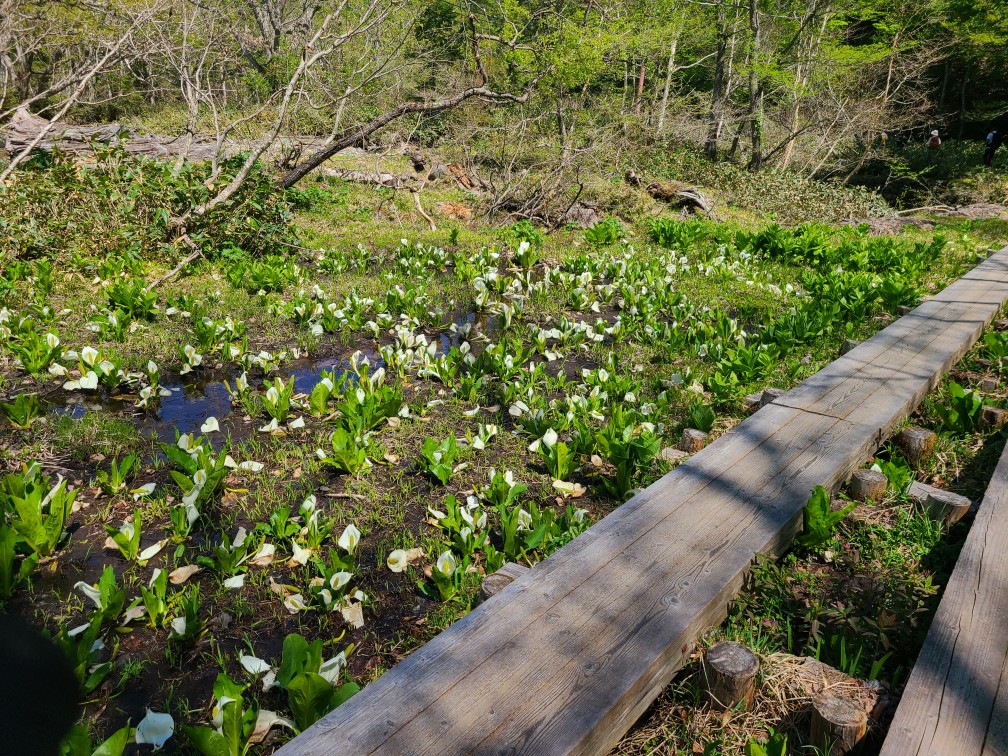 山の朝はやはり冷え込みます。夜あんなに暑かったのに寒くてフリースを着こみました。今日は戻るだけなのでゆっくりです。7時半に出発して見晴らしで大休憩。尾瀬小屋はフレンチのシェフがいるそうでおしゃれな佇まいで、朝からカフェもオープンしていました。そこで朝ごはんを食べたばかりなのにケーキセットを頼みました。痩せないよなぁ。朝は人も少なめでしたが、山ノ鼻へ向かうにつれて人も多くなりました。きたはらさんの希望で見本園を一周、水芭蕉が群生していました。ビジターセンターへも立ち寄り鳩待峠へ、途中いくつもの団体さんにすれ違い皆さんイヤホンをして先頭のガイドさんの話を聞きながら歩いています。山のガイドもそういう時代になったのだと思いました。鳩待峠で花豆ソフトをたべてバスに乗り戸倉へ戻りました。スキー場はだいぶすいていました。土曜日のほうがお天気が良かったので土曜日がピークだったようです。白根温泉(1000円ちょっと高い隣は500円だったよう)で汗を流し、ロマンチック村で夕飯を食べて帰りました。