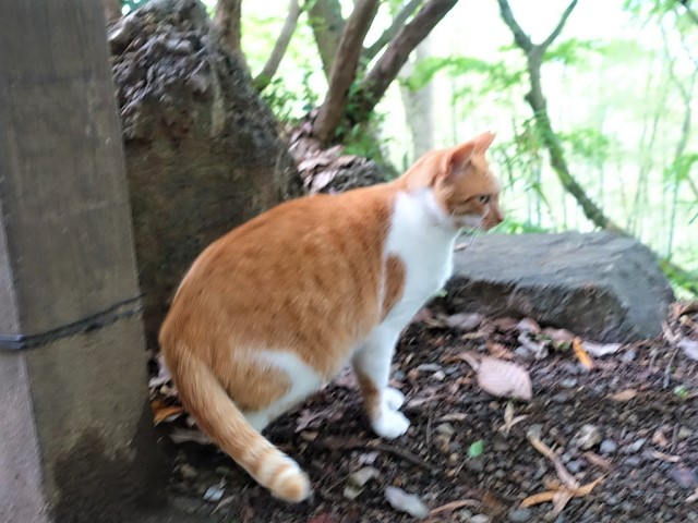 田沼側もメガソーラーが目立つ、このルート、何度か歩いている、小ピークはトラバースする事が多い、時節柄花なし、山菜なし、植林が少ないのは救いだ。唐沢に近ずくと数人に遭った。林道歩きが多くなる。境内に入ると、猫がノンビリ、10匹ほど見かけた、準備しておいたエサを与え しばしくつろぐ。