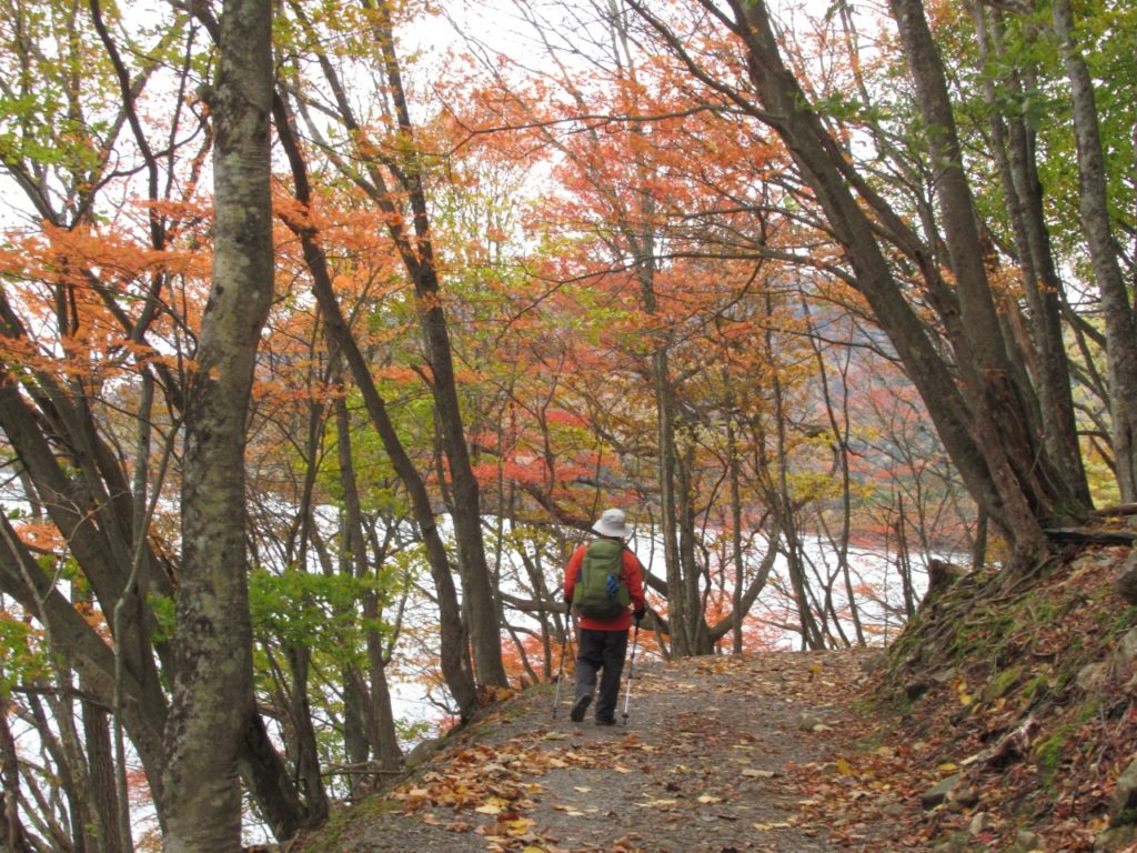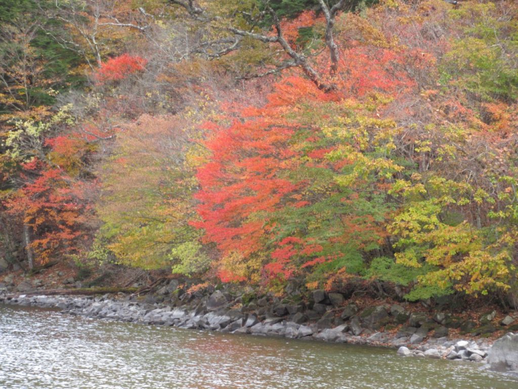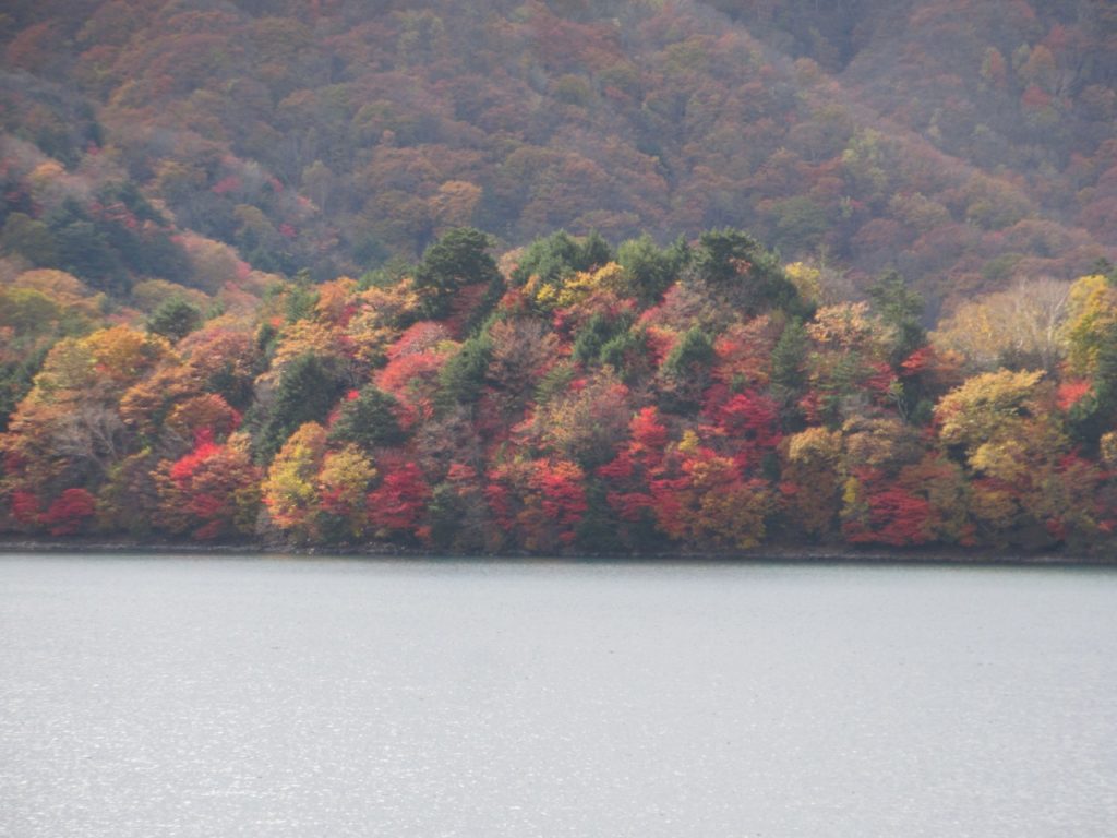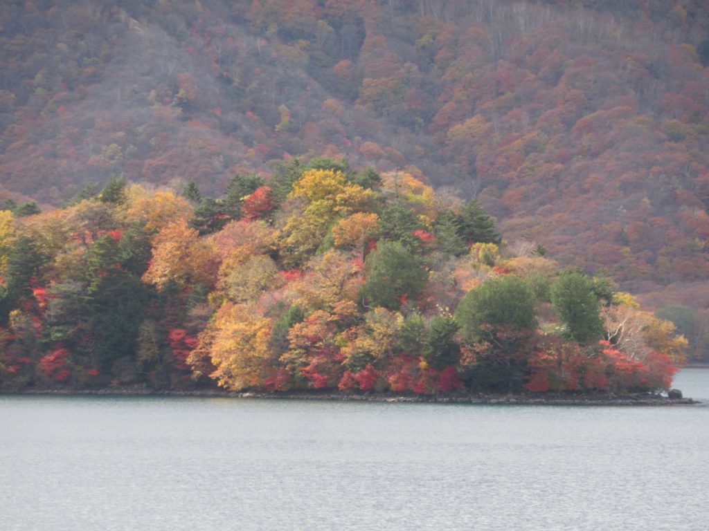 いろは坂の渋滞は避けたいので早朝4時前に出発、明智平駐車場は閉鎖されていますが、日の出見物の車が5時には列を成しています。暗いうちの熊との鉢合わせも怖いので、立木観音の駐車場で明るくなるのを待ちますが6時には早くも”満車”の表示、湖畔を歩き始め秋陽が射すとの紅葉が赤や黄色に輝き、八丁出島辺りは丁度見頃で正に錦秋といったところでしょうか。