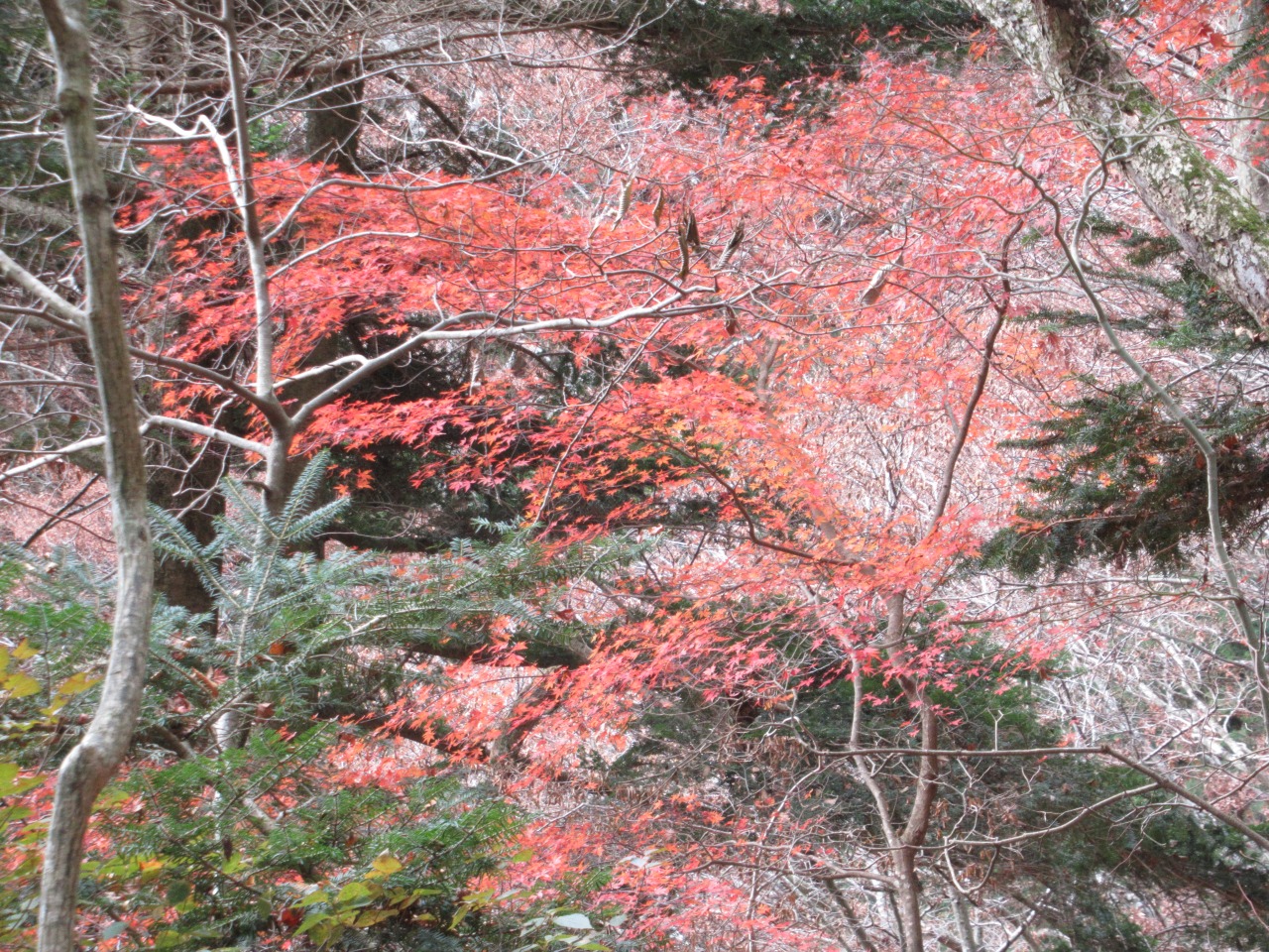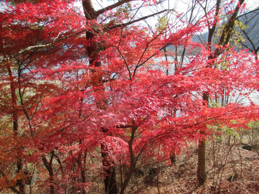 途中女坂のモミジ、諏訪神社の大杉、湖畔の紅葉を見ながら駐車場に戻り、この頃漸く雲が切れ富士を拝めました。
