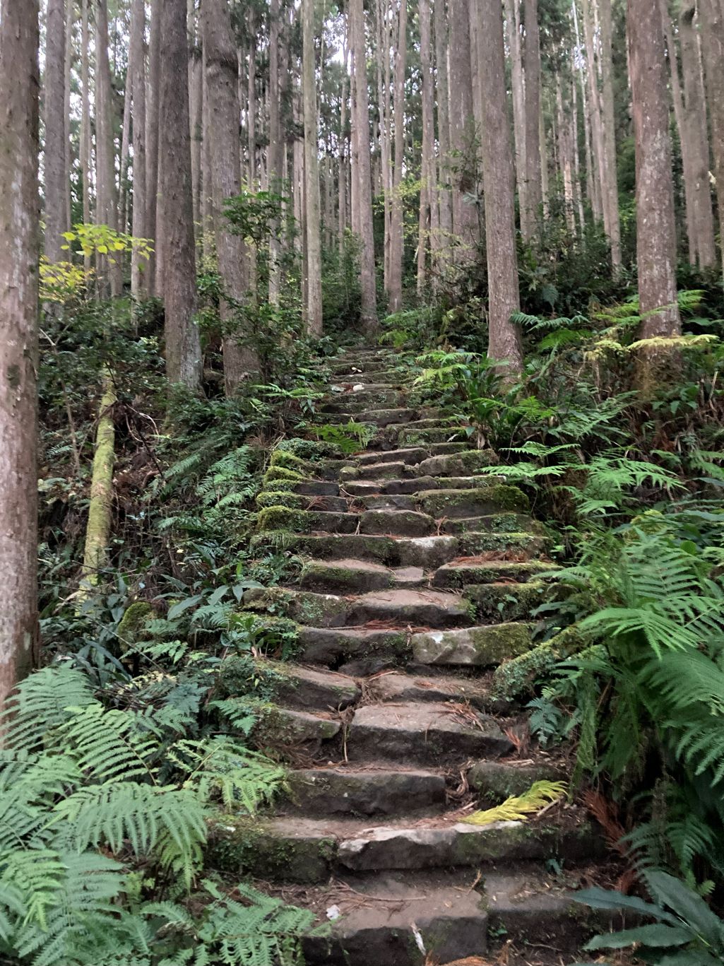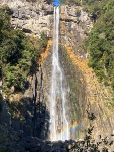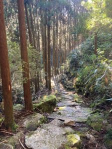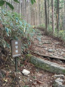 <詳細報告>那智大社には、10年以上前に観光で訪れたことがあり、その時、ガイドさんが那智参詣曼荼羅で那智大社の説明をしてくれた。このガイドさんは、山岳ガイドもしているような人で雰囲気のある人だった。いつも傘を持ち歩いているとのことで、なんで持ち歩いているのですかと聞くと、神様が怒って雨を降らせるからだと言っていた。那智曼荼羅には亡くなった方が黄泉の国に行く道が描かれておりどんな道だろうと興味を持った。ガイドにこの道は、どこにあると聞くと青岸渡寺の隣の階段を指さした。今回、熊野本宮から那智大社まで歩いてみることにした。青岸渡寺の階段を下りて戻ってくるため、黄泉がえりになる。2日間で距離30.8㎞、累積標高2329m。こんな長距離を歩いたことがなかったのでゆとりのある計画にした。1日目は、小雲取越コースで思いのほか早く目的地についた。古道は、登山道とは違い歩きやすいことがわかった。宿泊地の小口は、本当に何もないところでコンビニもない。民宿には、チェックインできたので荷物を置いてまわりをぶらぶらしてみるも本当に何もない。川の水が綺麗だったくらい。民宿は、私と台湾からきたカップルの3名。翌朝の食事時間は、3人で決めてほしいと言われたので3人で話あって6時がいいとオーナーにいうと、オーナーは対応が難しいとのことだったので結局、朝食は6時半になった。2日目は、大雲取越、朝一で胴切坂を登るコースはまだ、体も起きていないし、昨日は、隣部屋のエアコンの屋外機の音がうるさくあまり眠ることができなかった。胴切坂は、自分の体調と相談しながらゆっくり登ることにした。越前峠に着くころには、体調も回復してきた。このコースには、亡者の出会いがある。那智大社のガイドは、鈴の音が自分の周りをまわるように聞こえたと話をしていたことを思い出した。亡者との出会いに入り中間地点までくると鈴の音が聞こえる、これかと思ったが、前から集団の登山者がきてこの人たちがもっていた鈴だとわかり安心した。旅館のオーナーの話では、船見茶屋は景色がいいと言っていたので、ここでお弁当をたべた。ここから那智大社までは下りのみ。那智大社では、那智の滝をみてから帰ることにした。
