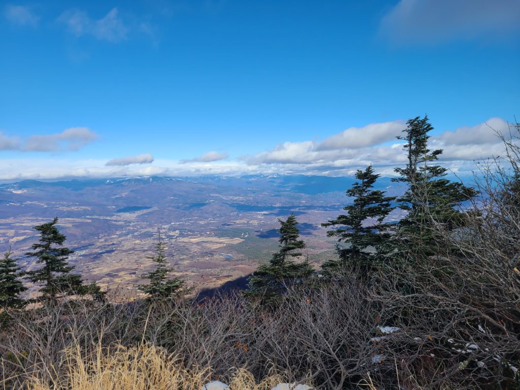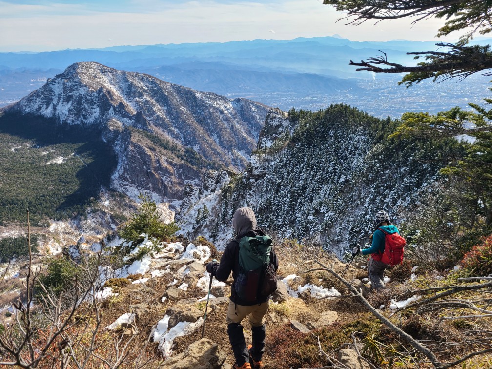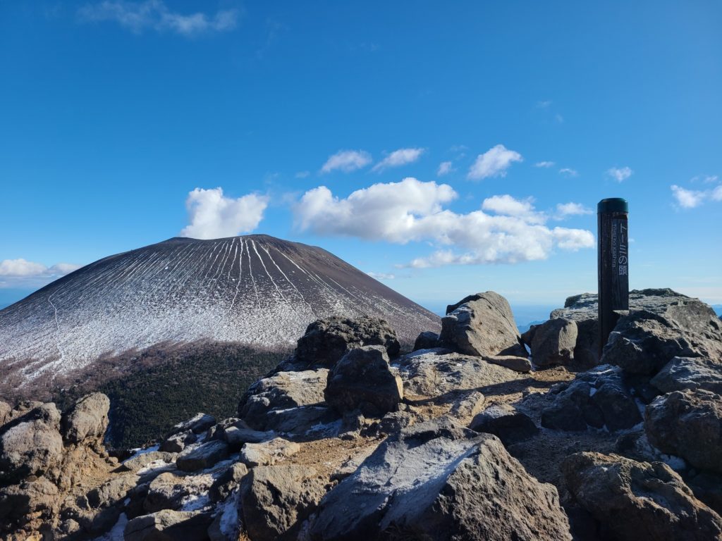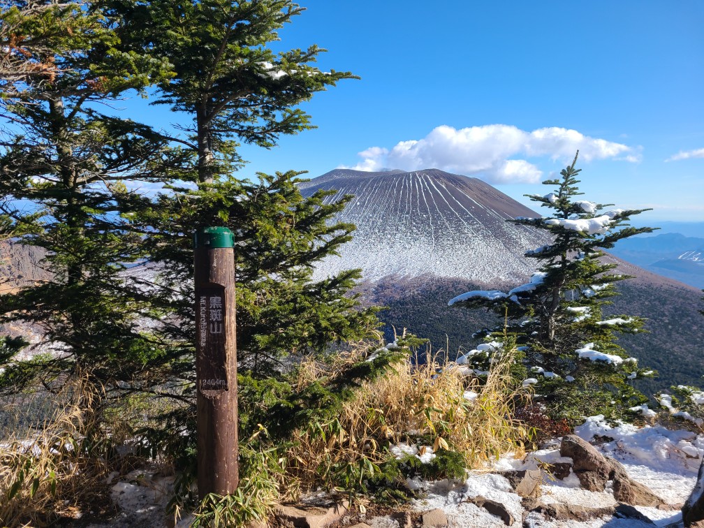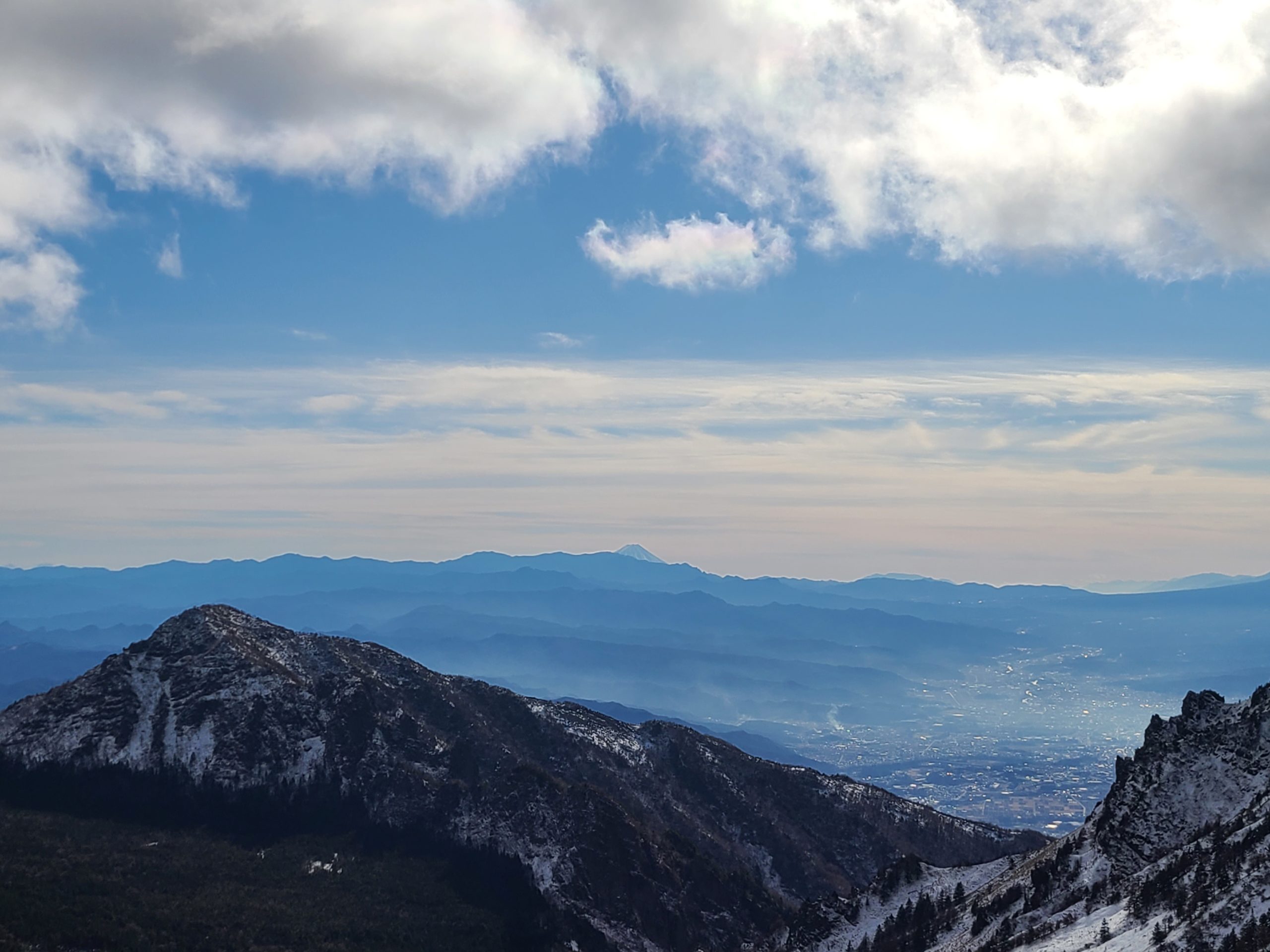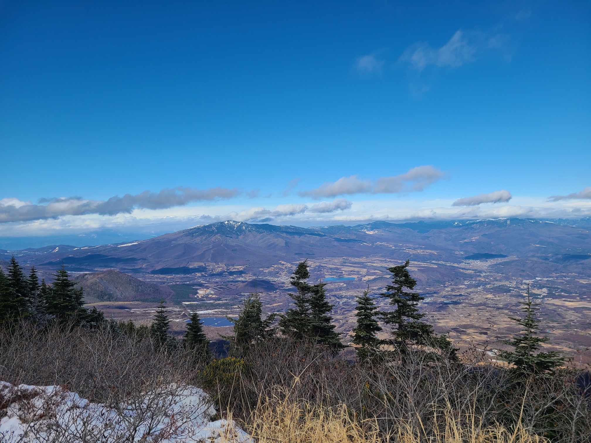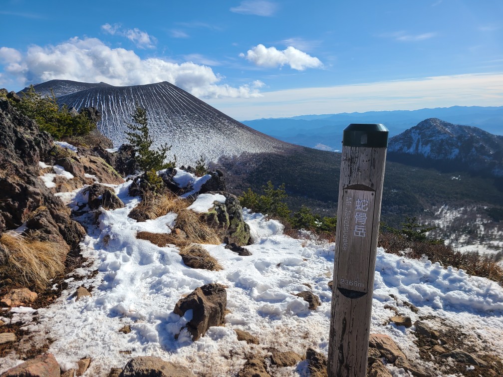 休日は争奪戦になる駐車場も平日なのでゆったり停められました。雪は登山口からあり最初は何もつけずに歩いたのですがピークを越えて下りになったところで追い抜いた男性がすってんころりん転びました。けがしてからでは遅いので、私たちもチェーンスパイクを着けました。見晴らしに出ると富士山や八ヶ岳南アルプスが見られましたが、北アルプスは雪雲に隠れて残念ながら見られませんでした。槍が鞘に着くとお待ちかねのガトーショコラの浅間山が眼前に現れ、この山初めてのすずと夫から歓声が上がりました。トーミの頭まではいつものことながら泥んこ道、夫はアイゼンを外しました。黒斑山でささっと写真を撮り蛇骨岳へ向かいます。そこまで来ると浅間山がまた大きく見えます。裏側に四阿山志賀高原方面を臨み昼食を取りました。風もなく暖かいです。昼食後は来た道を戻ります。帰りはあっという間に着いてしまいました。佐野でラーメンを食べて帰宅しました。