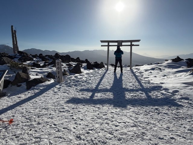 小山を4時45分に出発し、車山肩の駐車場には7時40分頃到着。一つだけ空いていたバイオトイレに行ってから車山に向かって出発した。登山は無理な格好の外人さんとかすれ違ったが、距離が短いので雪でもスニーカーで来てしまうようだ。車山は360度の見渡すことができ、中央アルプス、北アルプスが雪を纏った姿が美しい。神社の鳥居などもあり、そこからややスキー場のゲレンデ脇を下ってゆくのだがリフトが動いていてゲレンデは完璧に圧雪されているのに、誰も滑りに来ないのが不思議であった。風が強く顔が痛いのでバラクラバをしてシェルのフードをしないと進めないくらい寒かった。樹木が全くない平原なのでとにかく見晴らしがずっと良いので気持ちの良い登山道であり、登山道というよりはハイキング道だろう。私たちの前後ではソロの男性、ソロの女性の2名のみであまり周回をする人はいないようだった。スノーシューでしばらくゆくと雪が薄くなってきたのでアイゼンに切り替えた。どうやら右左逆に履いてしまったようで、時間が経つにつれ、足首、膝が痛くなってきて、連れの二人に「左足がなんか着地が変ですよ」と言われて、うーん我慢するかとそのままにしていた。御射山遺跡の近くは風もなく平でお昼休憩にした。今回はカップヌードル 謎肉ガーリックペッパー で最近匂いがよくわからなくなっているので、これくらいの方がちょうど良い。ココアと青森のりんごをもらって出発。蝶々美山まで最後の登りとなりいよいよ足が痛い。途中でアイゼンを左右交換してみたら、やはりずっと楽で、びっこたっこ(これは方言なのだろうか)ではダメだと分かった。また右が脱げてしまい、面倒臭いので左だけ履いていわゆる「かたちんば」(これも方言か)で駐車場に到着。夏に縦走も気持ち良いだろうなあと皆で話しながら小山に帰った。