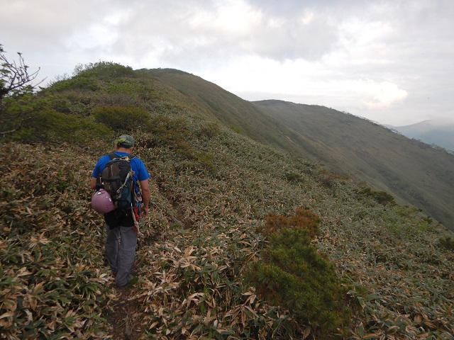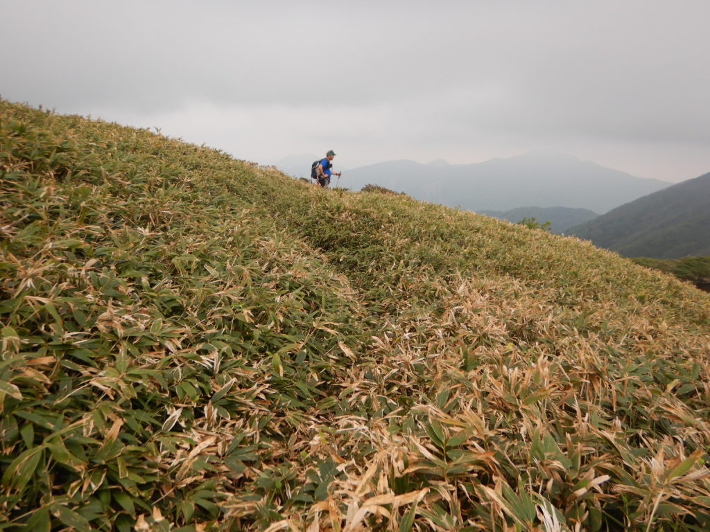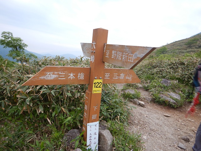 この先、だんだん沢が小さくなりますが、まだまだ小滝が続き、2:3の小さな二俣を右に進むと、笹枝をつかみながら小滝を越えることが多くなり、最後は胸くらいの笹薮を約1時間、ようやく登山道にたどり着きました。時刻はすでに16時をまわっており、予定時間を大幅にオーバーしていました。稜線の携帯電波が届くところで下山が遅れていることをメールで知らせて、流石山~大峠~三斗小屋宿跡を周回して、大沢出合Pについたころには22時を過ぎていました。