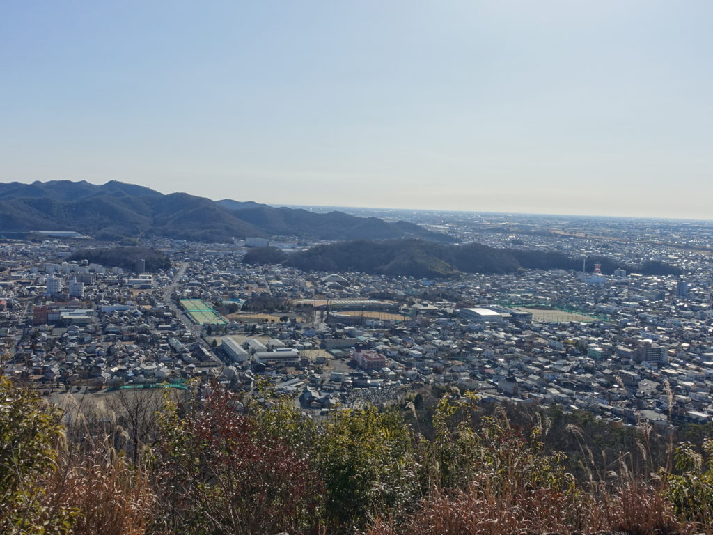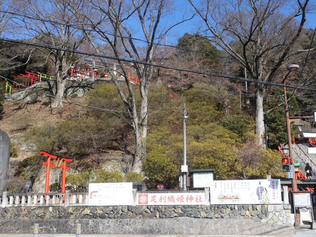車での道中は問題なし、駐車地は織姫神社前、数台空がありました。いきなり神社の階段登り、長い長い階段登りに体もビックリです。観光地化された神社周辺の雰囲気を楽しみ、登山道らしき道にはいります。このルート、右も左も展望あり、景色は楽しめます。眼下の街並み足利市を一望です。