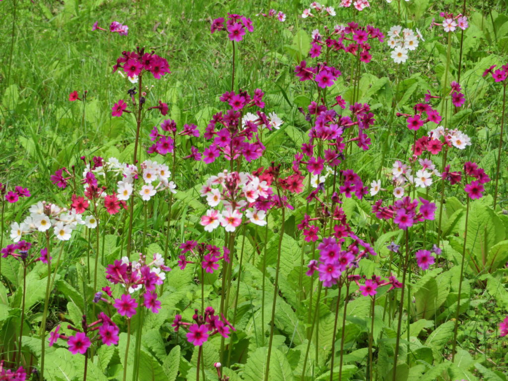 <報告>龍頭の滝駐車場 8時発 菖蒲ケ浜のクリンソウを先に見にいくことにする。途中、ヤマツツジが満開です。クリンソウは以前より数は少なくなっていたが場所が変わっており目前に群落を見ることができた。人数は時間的なこともあり、まあまあの人出。