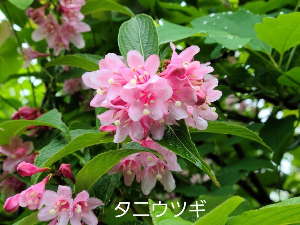 登山口から、送電線の鉄塔、マイクロ反射板を過ぎ、南岳まで樹林帯の緩やかな登りが続きます。樹林帯の登山道には、色鮮やかなタニウツギの花が満開だった。今年はタニウツギの当たり年なのだろうか、とても綺麗な薄ピンクの花に癒された。