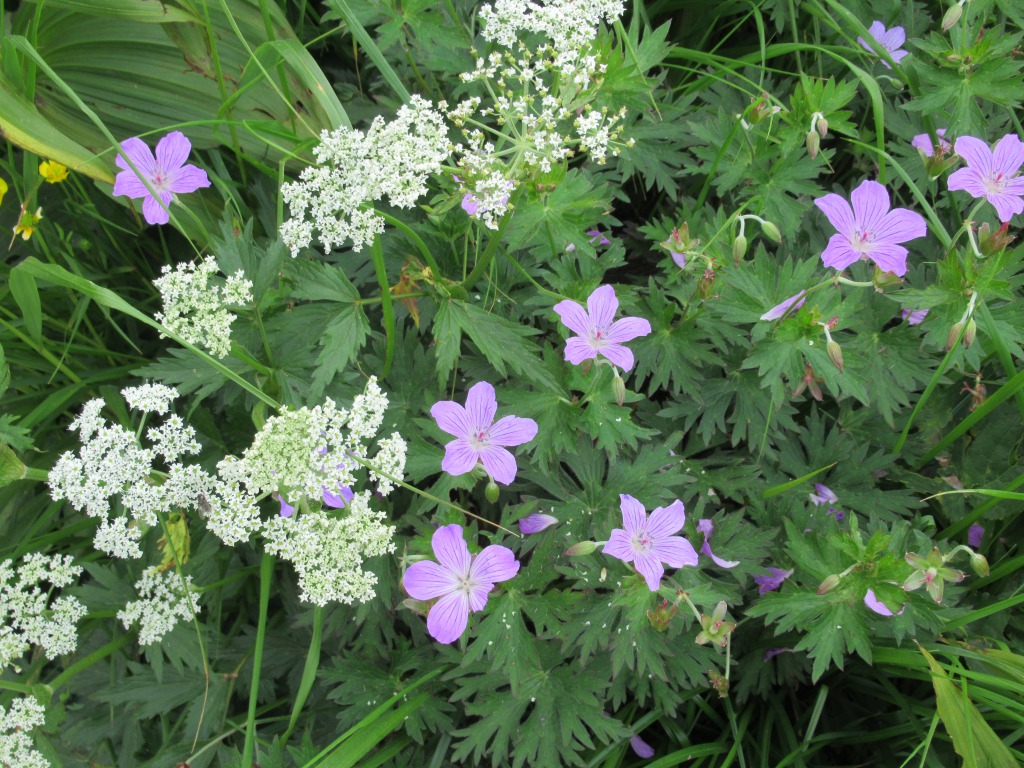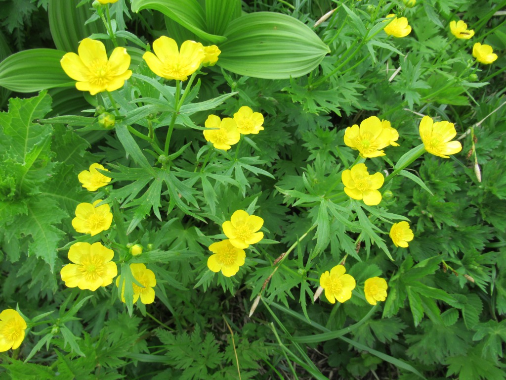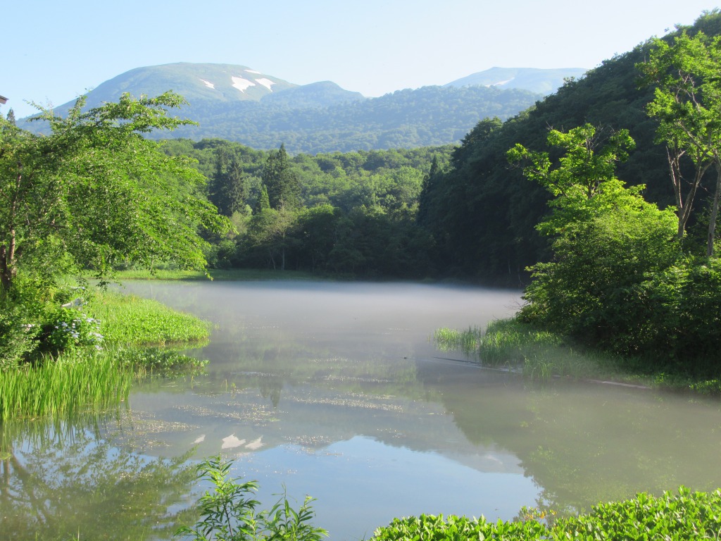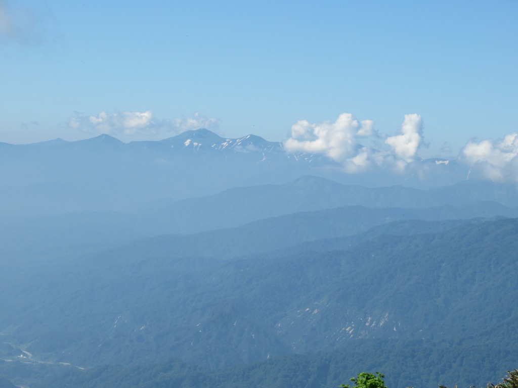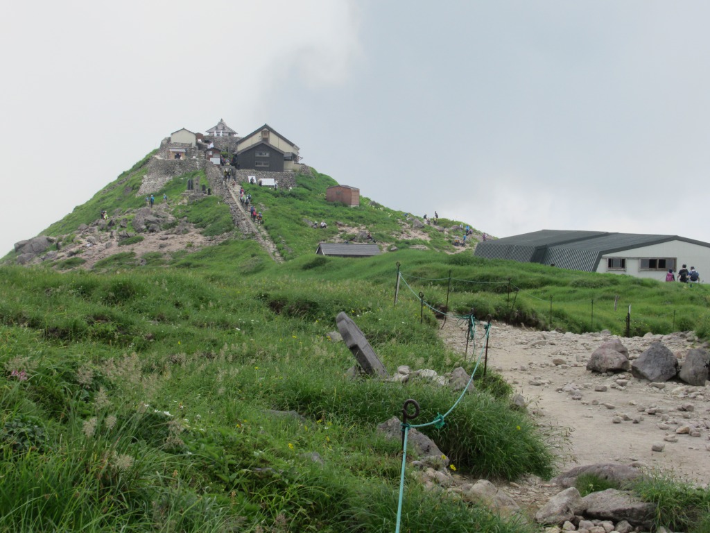 <詳細報告> 山形市内に前泊し早朝出発、麓の五色沼には薄らと朝靄が掛かり、湖面に映る月山を眺め登山口に向かいました。コバイケイソウの咲き乱れる姥沢岳はかなりの人出、月山に至る稜線や朝日連峰が綺麗に見渡せました。牛首に着く頃には夏山に付きもののガスが早くも湧き上がって来ました。ここから月山への急登はかなり暑く、バテそうになりますが、キスゲ、シャクナゲ、ハクサンフウロ、シラネニンジン、ハクサンイチゲなど多くの花と、時折吹き上がる雪渓からの涼風に癒やされ山頂に到着しました。登山客は多いのですが、山頂は広く、チングルマ、ミヤマキンポウゲ、アオノツガザクラの咲くお花畑で大休止、神社で参拝し下山しました。雪渓では大学のスキー部と思しき人達がポールをぬって滑っていました。帰りに麓の志津温泉で一汗流しましたが、茹だる様な暑さでまた汗を搔いてしまいました。