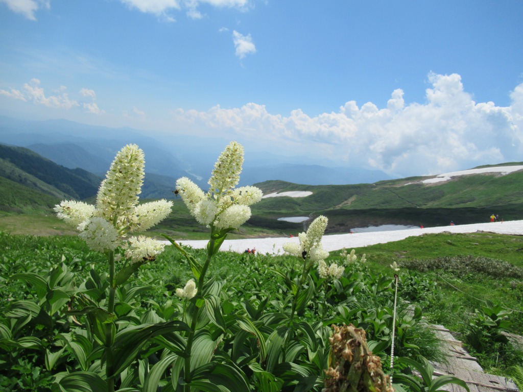 <概要>梅雨明けの好天の下、多くのハイカーで賑わい、少々暑かったが、雪渓からの涼風と多くの花々に癒やされました。