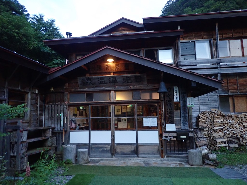 日光沢温泉は古いが趣のある宿だ。山小屋と称しているが、浴衣が用意されていて、風呂には石鹸・シャンプーもあった。食事も豪華ではないが美味しかった。宿の主人の話では今日大清水から登ってきた客の話では湯沢出会では靴を脱いで渡渉したらしい。私たちもそれを覚悟した。