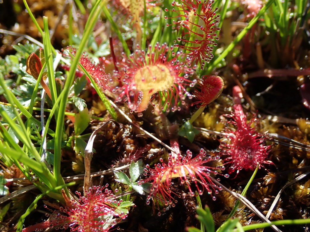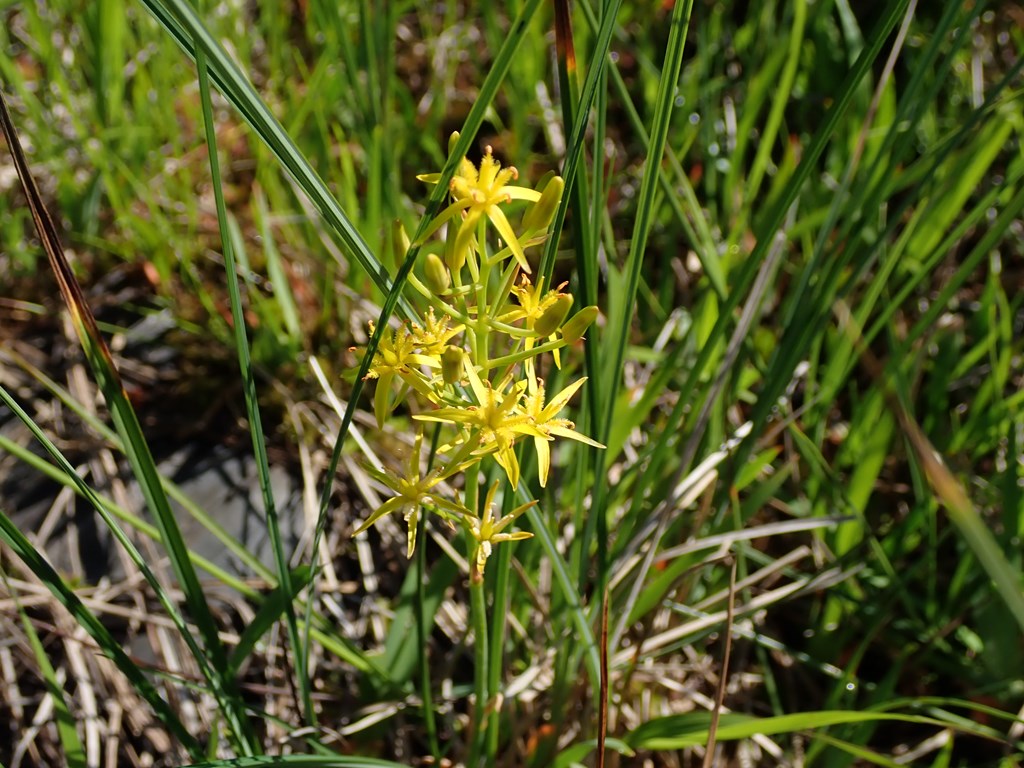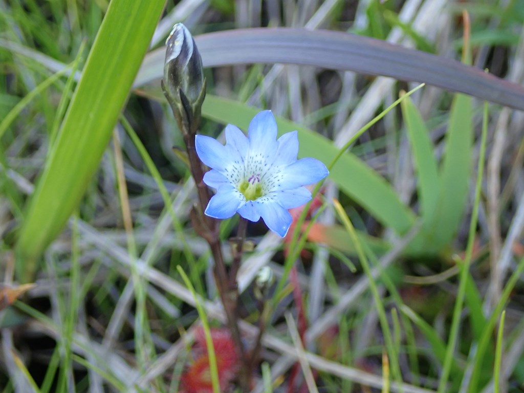 快晴の湿原は気持ちが良い。花は少ないが、タテヤマリンドウが見頃だった。他に、ワタスゲ、オトギリソウ、キソチドリ、サワラン、キンコウカ、モウセンゴケが見られた。ただバイケイソウの大半は動物の食害に会っていた。鹿なら被害がもっと大規模になっていると思われるので、カモシカが食ったのだろう。湿原からは白根山が大きく見えた。湿原から約8Km離れているが、今日は空気が澄んでいた。しかし、北側の燧ケ岳はちょうど山頂に雲がかかっていた。湿原には池塘が多いが、浅いものばかりかと思っていたのだが、一番広い金沼は、木道から覗き込むと、かなり深そうに見えた。湿原北端近くで大清水からやってきたという男性に会った。朝早く出たらしいが8時に湿原に着いているのだからかなりの健脚なのだろう。渡渉について聞くと、石を投げこんで靴を履いたまま渡ることができたという。