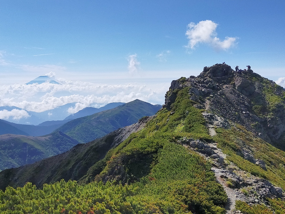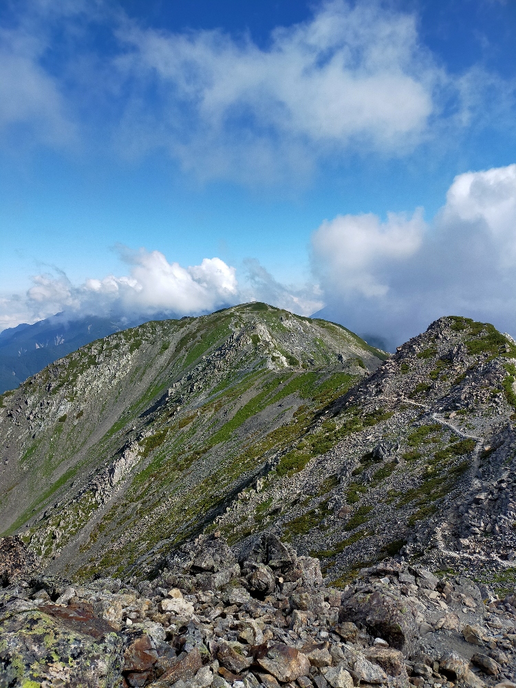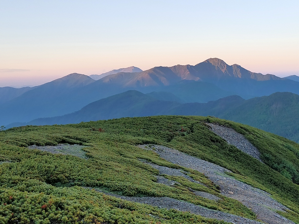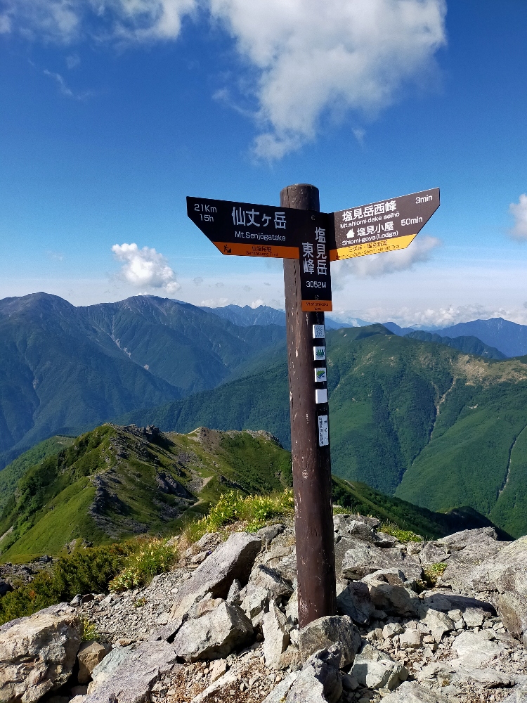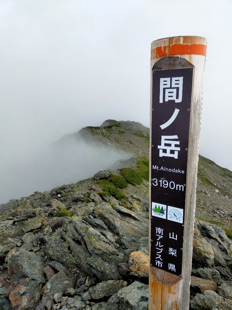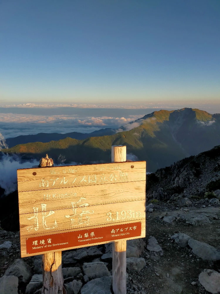 <行程>22日鳥倉登山口~三伏峠小屋(幕営) 23日三伏峠小屋~塩見岳~熊の平小屋(避難小屋) 24日熊ノ平小屋~間ノ岳~北岳~北岳肩の小屋(幕営) 25日北岳肩の小屋~北岳~北岳肩の小屋~広河原