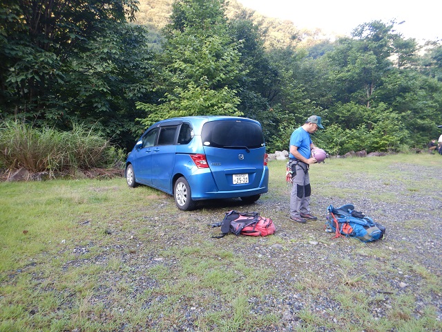 沢遡行中は気が付きませんでしたが、沢の遡行から林道歩きになると、緊張感が解けたことから、昨日の泳ぎで未だザックはびしょ濡れ状態。重いザックのベルトが食い込んでいて肩が痛くてしょうがない!駐車場に着いた頃には私の両肩は赤くミミズ腫れができているのに気が付きました。