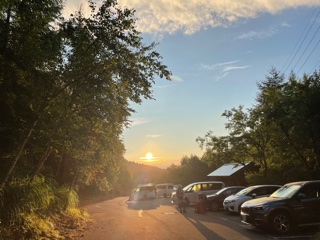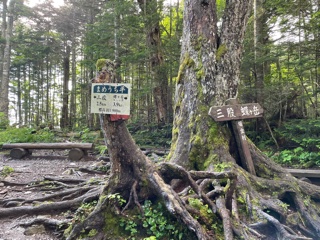 登山当日はホテルを4:00に出発、前日雨だったので登山口までの道路は慎重に運転し三股登山口には5:00に着いた。この時間で第二駐車場に数台、登山口駐車場は8割程埋まっていた。ホテルで朝食をたべて出発していたら第二駐車場になったかもしれない。(第二駐車場から登山口まではかなりの時間を要する)登山者の話で、7月の4連休には第二駐車場も満車、路上には沢山の車が路駐し、車を止めるのに苦労する登山者が多く出たとのことだった。