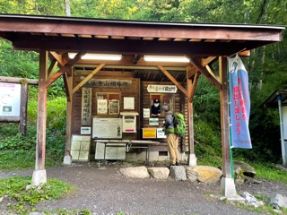 駐車場にはトイレ・水場有り(トイレ横)。駐車場から20分程で三股登山補導所に着き計画書を提出した。高齢者で女性ソロでの入山なので、計画書提出時に色々と安全指導があった。
