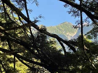 木々の間からの常念岳に続く稜線