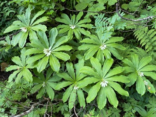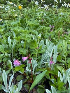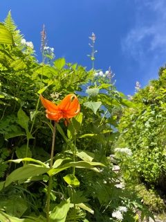 蝶ヶ岳方面に戻り下山開始、テン場のテントは全て撤収されていた。テン場からのガレ場を過ぎ、大滝山分岐までの登山道周辺に咲く花をゆっくりと愛でた。分岐からの下山は速い。登りに太ももが堪えた階段も下山時は下りやすかった。整備に関わった方々に感謝だ。9:23には駐車場に着いた。第二駐車場を過ぎた辺りで、徒歩での女性2人がいたので声かけしホリデー湯まで乗せ、湯上り後2人を豊科駅まで送った。この日は穂高駅近くのホテルに宿泊し、翌日は6:00にホテルを出た。