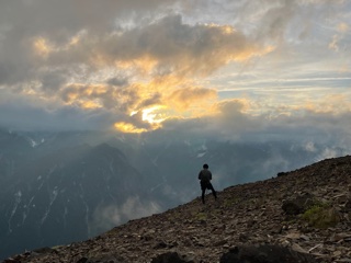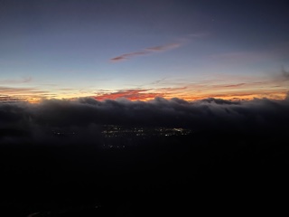 蝶ヶ岳の日の出を見るために4:00に起床。蝶ヶ岳日の出の時間は4:57、 日の出までの空、雲の流れ、街の灯り、雲海がとても美しかった。