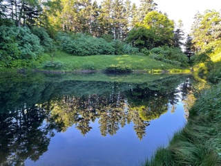朝日に輝く妖精の池