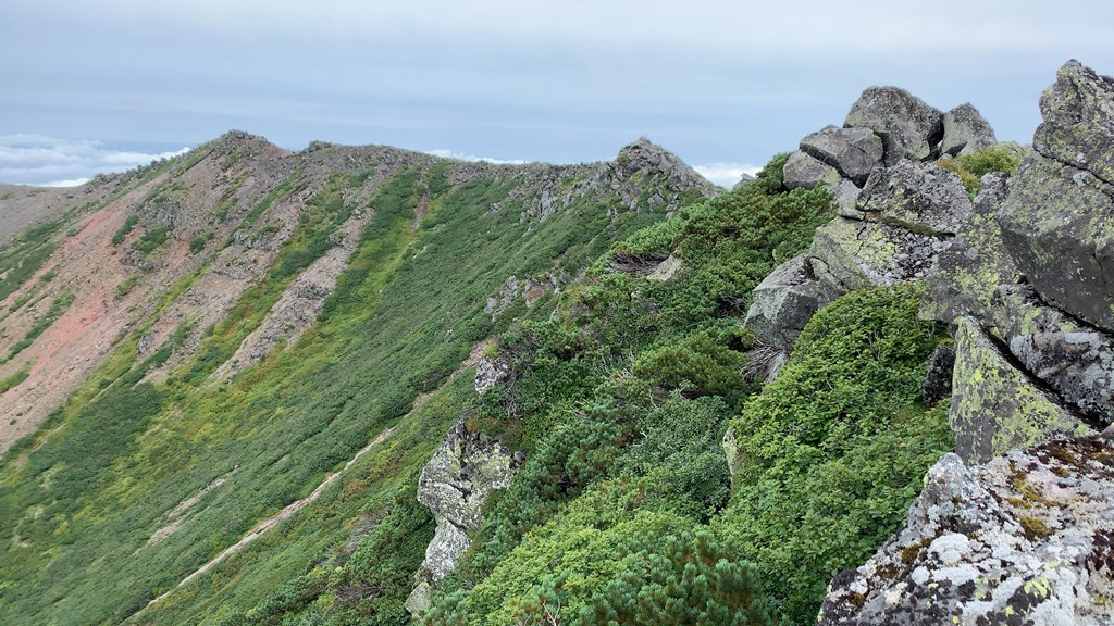 比羅夫登山コースは一番楽だと聞いたのと北側のコースなので樽前幌尻の経験で晴れやすいことから選んだ。たまに小雨が降るが1500mまで樹林帯の急登だがよく整備されていて登りやすくニセコアンヌプリゆ倶知安市内の展望が素晴らしく飽きさせない。