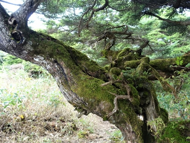 やはり登山客は少ない、単独者1人だけだった。先ずは白笹山を目指す、何度か来ているが記憶は怪しい。花はこの時期無いので、ひたすら体力維持が目的だ。ルートが荒れているのでは、と心配もあったが、藪(主に笹)は刈払いされており感心しました、ご苦労様です。白笹の山頂は藪の中に標柱が有るのみ、写真を撮る状況にない。天候はまずまず、視界もそこそこ、気温は20℃ほど、下界に比べれば暑さはマシだ。眼前につながる南月山への稜線を進む。あたりの景色は一変、火山岩がゴロゴロ、樹木は殆どなし、茶臼岳の爆裂ドームがやけに目につく。登山客もチラチラと増えてきた。日の出平で誰も通らない西への周回ルートに向かう。ルートは急に狭くなり、周囲は笹薮が濃く、獣も登山ルートを使っている様だ、多分鹿であろう、木の皮がかじられている、熊の気配は感じられなかった。ルートは狭いが笹は刈られており助かる。南側は歩いてきた白笹~南月山お稜線がハッキリ、北側は大倉山、流石の稜線だ。思い起こせば、この下山ルート、沢名川の上流で、山スキーに来た事がある。雪が無いと笹ばかりで、ダケカンバの林が凄い。下山にはバランスを崩さぬ様細心の注意を払う、そのためもあり疲れてヘロヘロだ。ようやく三斗小屋からの縦走路に出た。せっかくなので、沼ツ原湿原を周回する。花は期待してなかった通り何も無し、コバイケイソウの穂だけがやたら目立った、時期が良ければ可なり綺麗でしょう。人出が少ないので風呂に入る事に、久しぶりに百村の幸の湯で疲れを癒して帰路につきました。体力低下にはやはり歩くことですね。