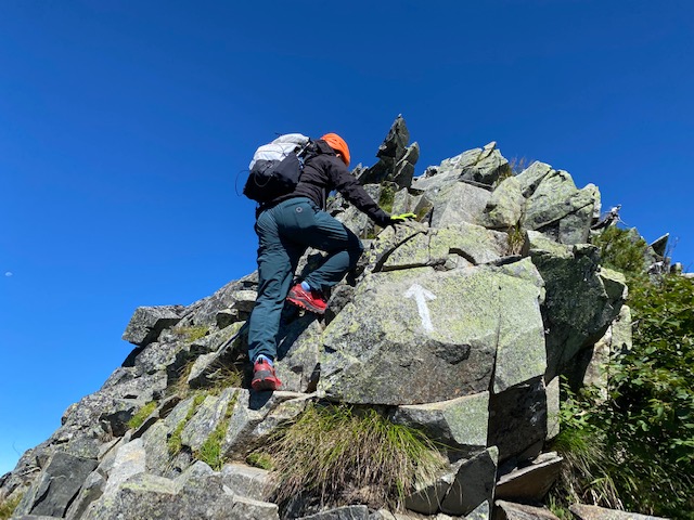 西穂高口7:15-西穂高岳山荘 7:54-西穂高岳山頂 9:40- 西穂高口12:05