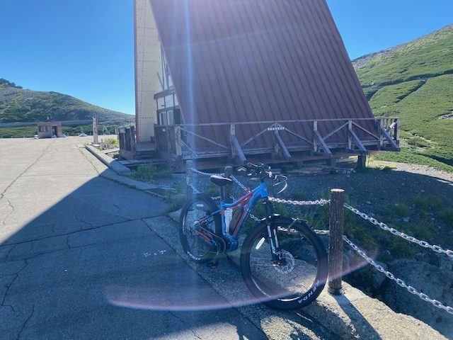 翌日朝温泉につかり、6時30分に宿を出発して、7時前には平湯峠駐車場に到着。すでにたくさんいわゆるロードバイクの坂バカと呼ばれる人たちがガチの格好で自転車を用意している。そこでチーティングであるが、電動アシストマウンテンバイクで走り出すと、それらロードバイク の人たちを尻目にぐんぐん登ってゆき、全くダンシングと言われる立ち漕ぎをしないで畳平に到着。またバスの早朝便の人たちがワンサカいて、山頂を目指している。自転車を強固に地球ロックしてから、剣ヶ峰を目指す。大学生の頃に2回ほど夏休みのスキー合宿のために畳平のヒュッテに泊まって、スキー板を担いで、コロナ観測所の近くから雪渓に出て10数本ポール練習したことがある。天神平スキー場のスキー合宿に参加した。先輩のボロい車で安房峠を越えた恐ろしい記憶と板を持って宿に戻る途中に雷が近くの岩に落ちて、跳躍していったのをみた恐ろしい記憶が蘇った。さて山頂まではザレ場が続き、人も多いのでまあまあストレスであったが頂上到着し写真を撮る。雲海がひろがって素晴らしい景色であった。自分の登ってきた乗鞍スカイラインの葛折りの道がみえる。ものすごい人でごった返しているので、密になるのが嫌なのですぐ下山開始。畳平に着くとますます人が増えていた。下りの道はおそらくバスのスピードよりより速かったのではないかと思う。最高時速は60Km/hくらいであったので、マウンテンバイクのセミファットタイヤはロードの細いタイヤと違って、この上ない安心感があった。あっという間に平湯峠に到着した。なんか自力でも登ってみたくなったので、貯金してカーボンロードバイク を買おうと思った。