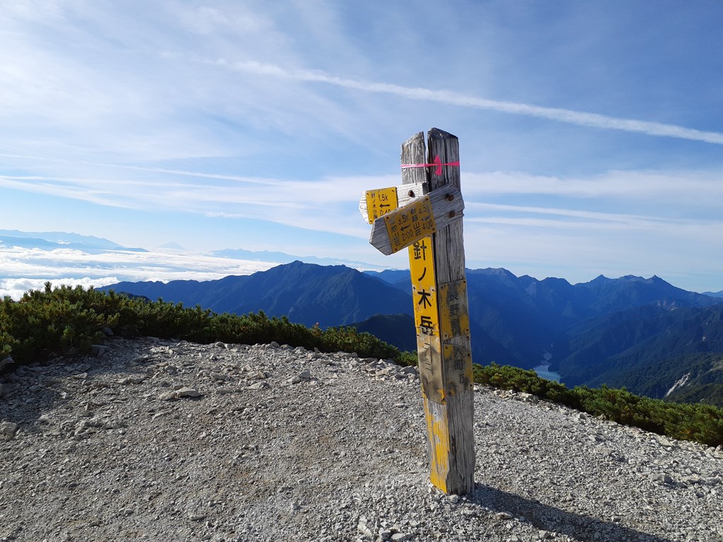 針ノ木小屋6:25 – 赤沢岳9:35 – 種池山荘12:59 – 冷池山荘15:29