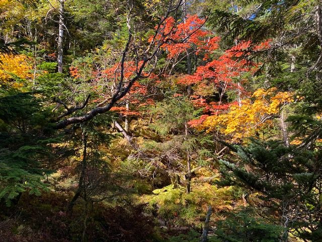 10月1日金曜日当直明けで外来をやり終了後12時に小山発。圏央道、中央道で松川インターチェンジへ。ここから芝沢ゲートまでが長い。すれ違いのできない片方崖の道が延々続き、ようやく芝沢ゲートへ。3台の車があったが、人の気配なし。山に入っているのだろう。つまりこの日に到着したはじめての車が私の車であった。少し降りると沢があり、そこに下りると、2匹の若い鹿が出てきて、カーンと鳴いて逃げて行った。コンビニでかった惣菜をつまみにウイスキーを飲む。私一人だけの世界で、浸ったもののすぐ飽きて、19時30分くらいには車で寝る。しかし私の車はフラットにはできないので、結局横にずれてゆき寝心地が悪いことこの上ない。車中泊はうんざりである。