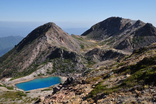休息後、御前峰・大汝峰へ登り、北アルプスなどの大展望と池めぐりを楽しみました。快晴だったので翠ケ池の水の色は、とても神秘的な感じでした。