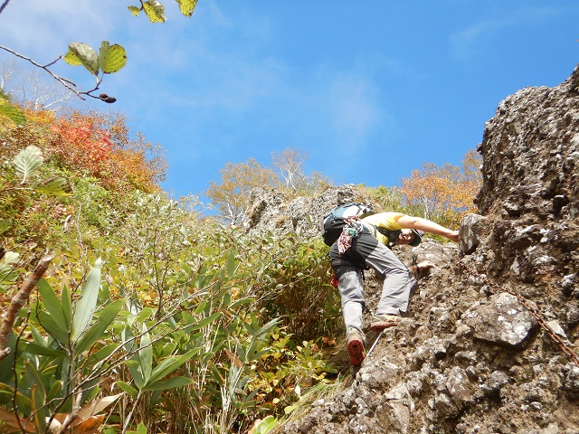 第一峰(P1)直下の鎖場